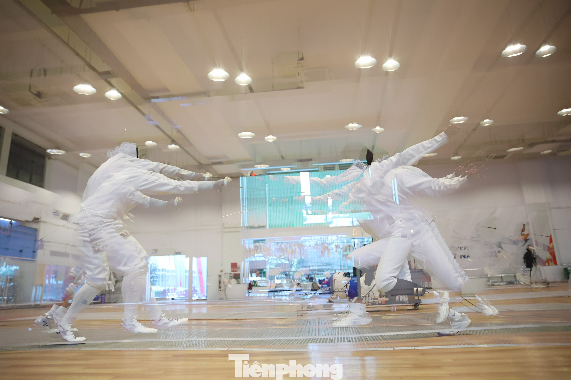 Buổi chiều ở phòng kiếm thuộc Trung tâm đào tạo vận động viên cấp cao Hà Nội, bầu không khí sôi động được tạo ra bởi các tuyển thủ thuộc đội tuyển đấu kiếm Việt Nam. Khắp nơi là những tiếng bước chân, tiếng kiếm va chạm và cả những tiếng hò reo sau mỗi đường kiếm đẹp.