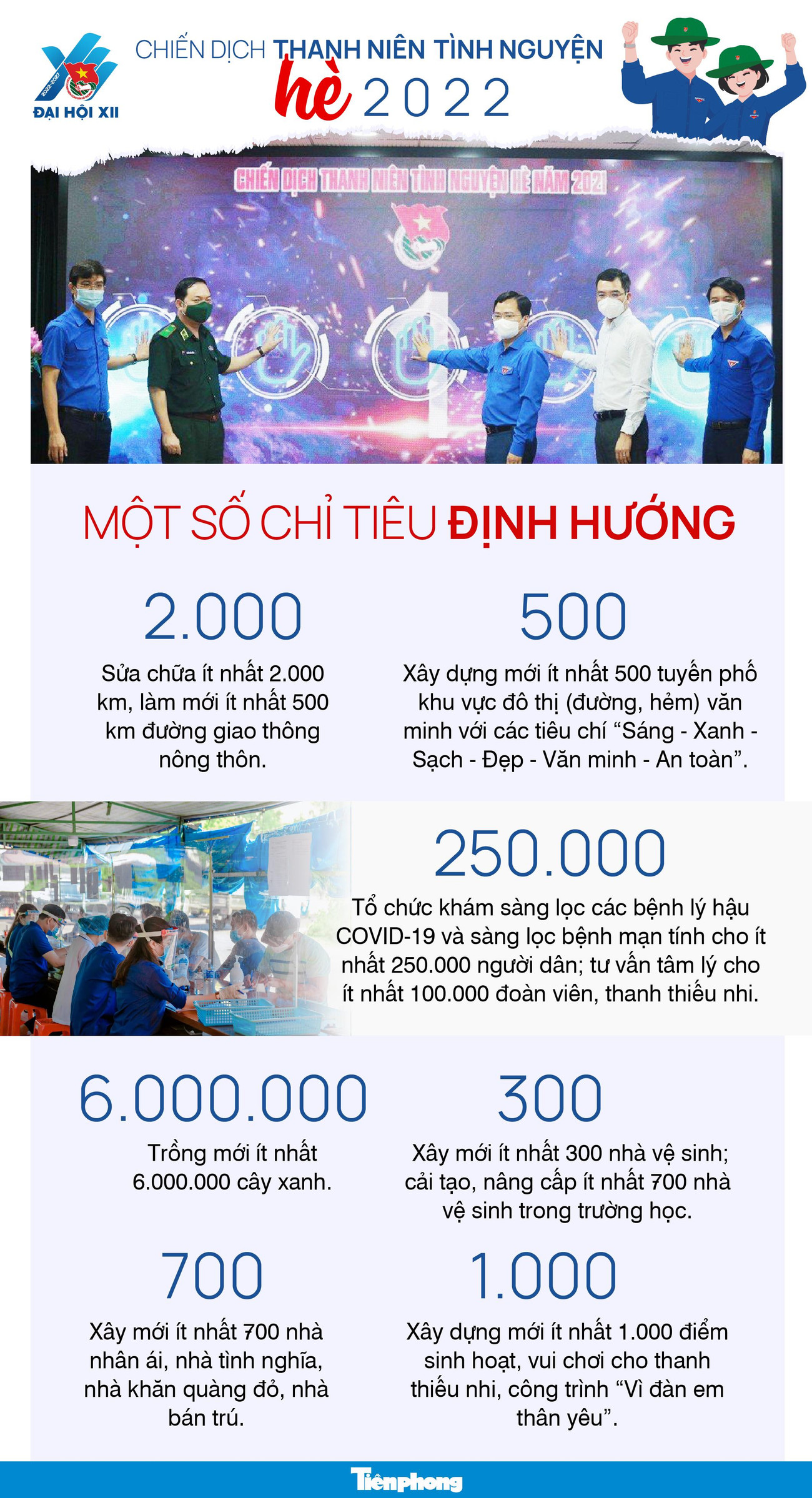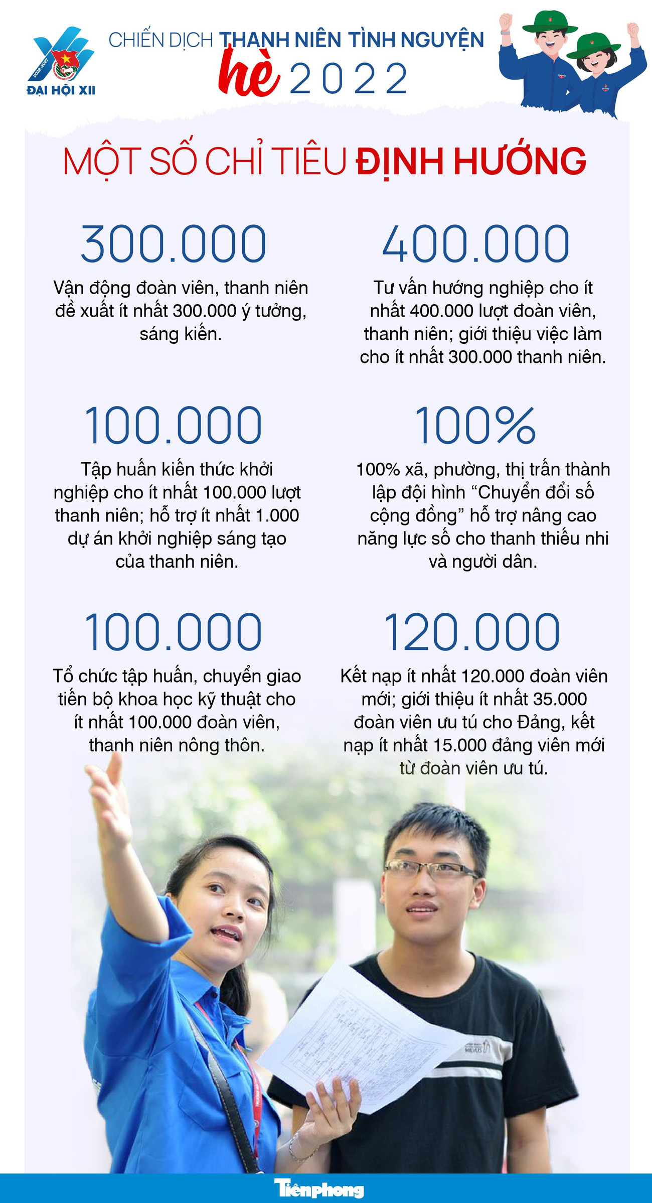 Chiến dịch Thanh niên tình nguyện Hè 2022 hướng đến một số chỉ tiêu: