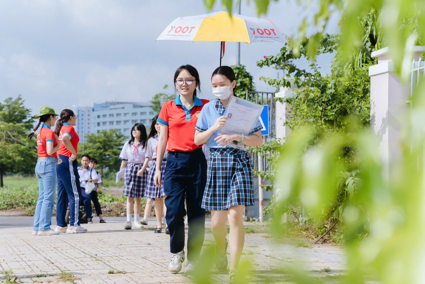 | Chiến sĩ 'Hoa phượng Đỏ' hỗ trợ thí sinh và người nhà thí sinh tại các địa điểm thi tuyển sinh 10 trên toàn TP. HCM. (Ảnh: TLTĐ) |