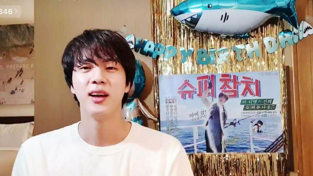 Sinh năm 1992, năm nay Jin tròn 29 tuổi, là anh cả của BTS, nhưng Jin cũng là người cầm đầu nhiều trò quậy phá cùng dàn maknae line của nhóm. “Đáp lễ” những hoạt động của fan dành tặng mình, Jin tung ca khúc Super Tuna với giai điệu và vũ đạo cực nhây, khiến cả fandom cười ngất.
