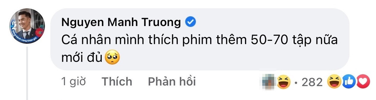 Trên trang cá nhân, Mạnh Trường ao ước rằng giá như phim kéo dài từ 50 đến 70 tập thì tốt biết mấy. Diễn viên Tú Oanh (vai bà Phượng, mẹ Ly) thì than thở rằng do con gái Phương Ly tha thứ quá nhanh, bà thông gia “quay xe” gấp quá khiến con rể Quy hụt hẫng vì không được thất tình lâu. Dưới bài đăng của đàn chị Tú Oanh, Manh Trường cũng nói vui rằng anh đang thấy đóng thất tình rất hay thì cặp đôi chính lại tái hợp quá nhanh.