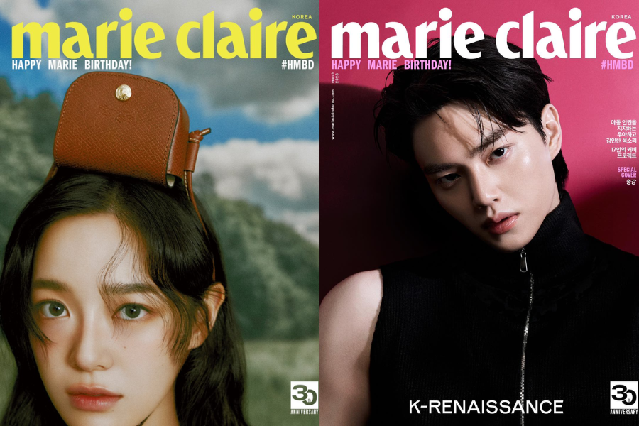 Marie Claire Hàn Quốc cũng nhận được nhiều lời khen khi quy tụ được dàn idol nổi bật của thế hệ thứ 3. Nayeon (TWICE) gây bất ngờ với độ "chanh sả" không thể hợp hơn với nhà mốt kim hoàn xa xỉ Chaumet, trong khi Joy (Red Velvet) yêu kiều trong danh phận là "nàng thơ" của hãng thuộc da Tod's. Về phần Kai (EXO), nam idol giữ vững phong độ "bắn ảnh" cùng YSL Beauty, đọ vẻ phong trần với Hyungwon (MONSTA X) trong trang sức của Fred.