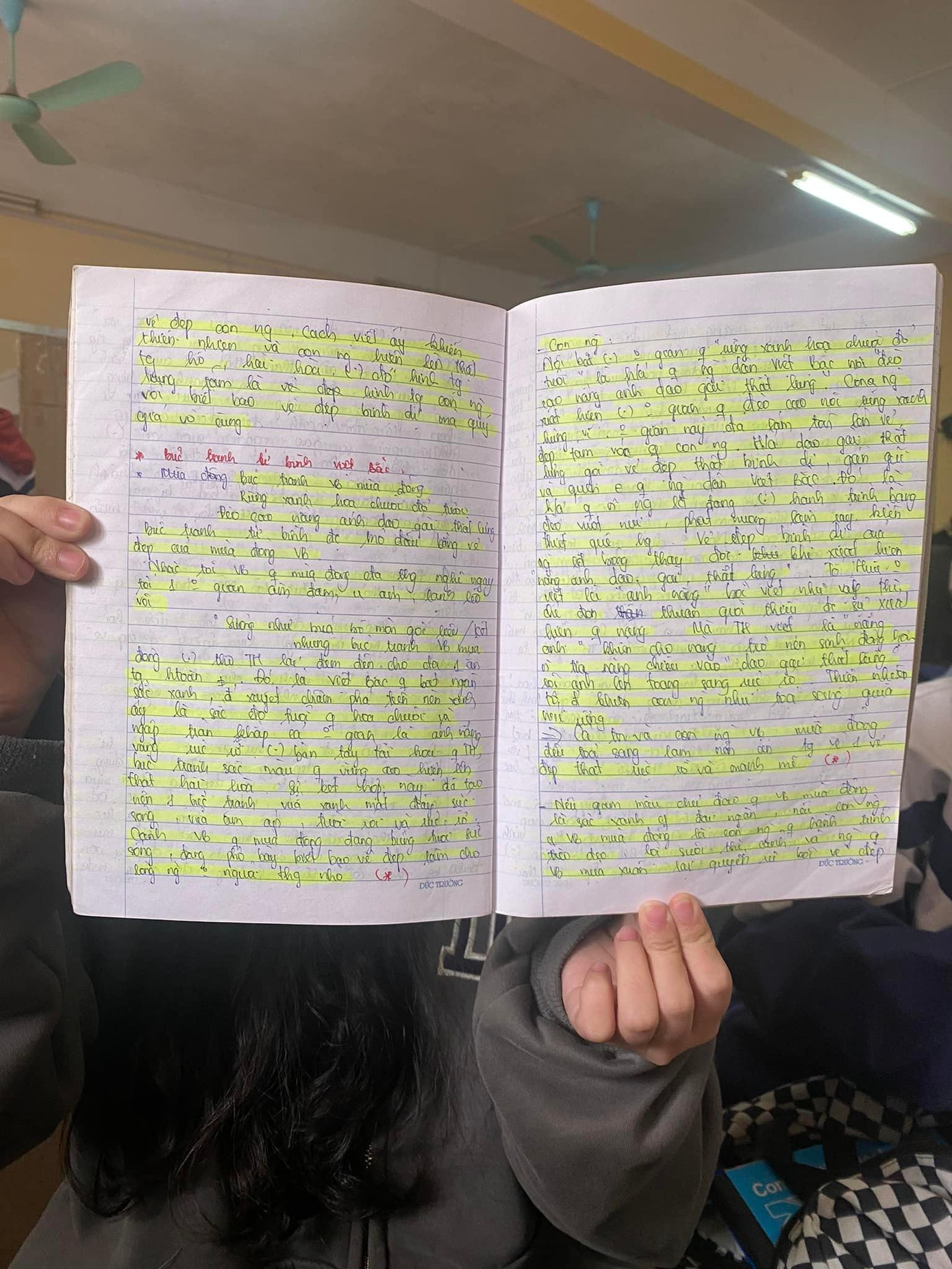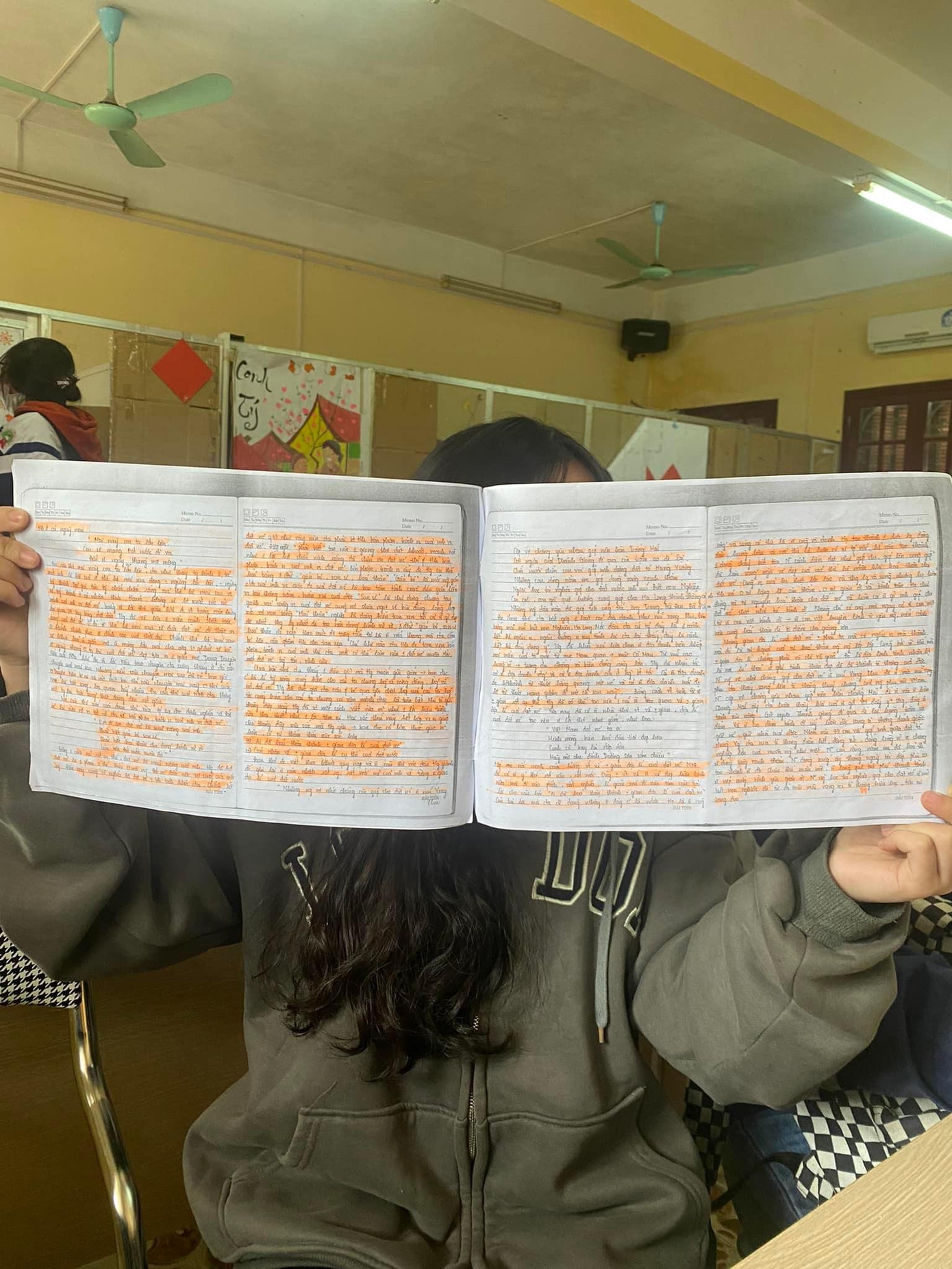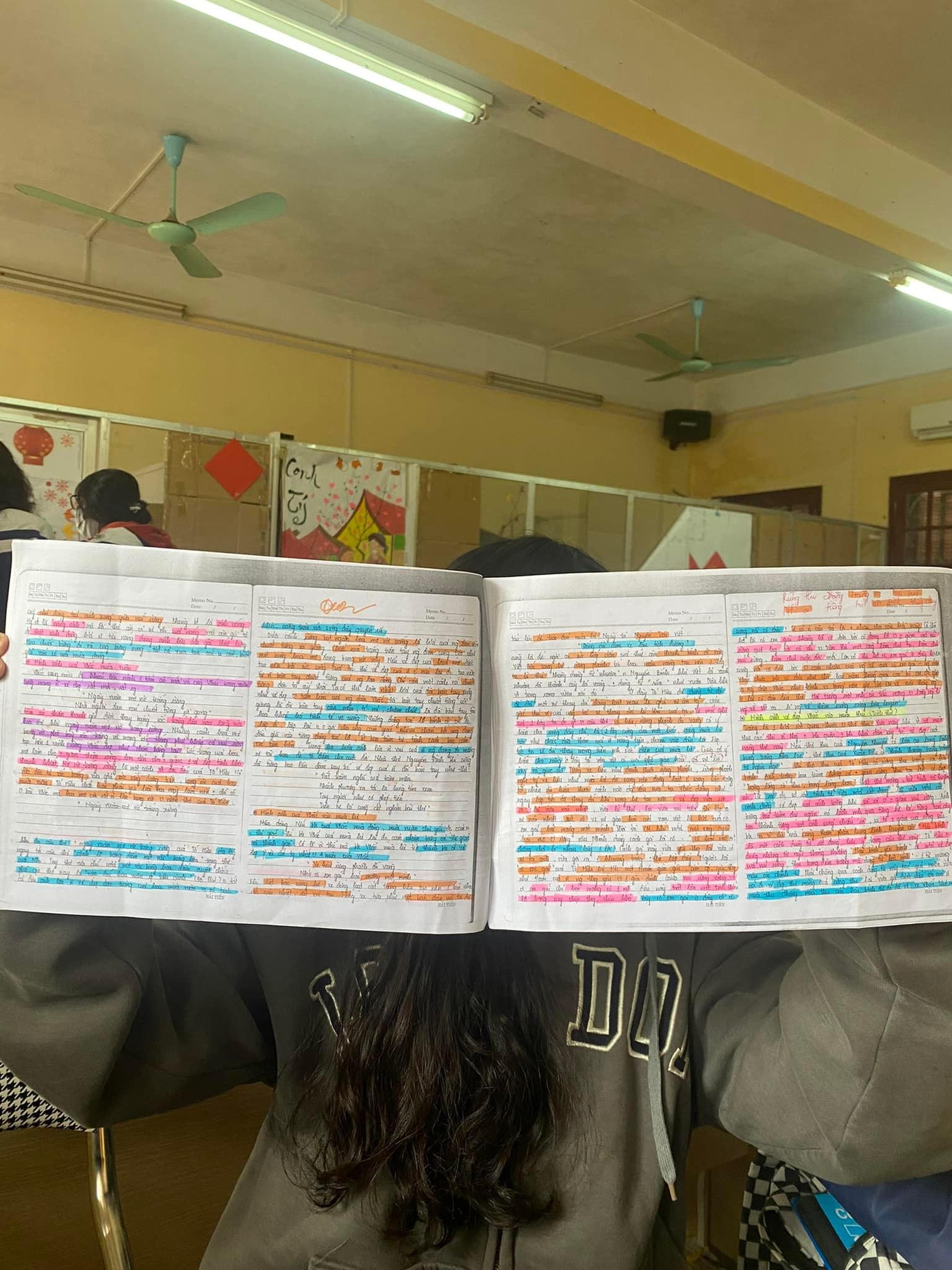 Tuy nhiên, cũng có những câu chuyện "cười ra nước mắt" về cách ghi chú những ý chính này từ các bạn học sinh. Cụ thể, trên mạng xã hội xuất hiện bài đăng của một bài nữ sinh chia sẻ về việc bạn này đã cho bạn của mình mượn bút nhớ để tô ý chính về cho dễ học. Tất nhiên, cô bạn cũng không ngần ngại mà cho bạn mình mượn bút ngay. Nhưng câu chuyện chưa dừng lại ở đó, đến khi xem vở của bạn mình, nữ sinh này phải thốt lên không biết là nên khóc hay nên cười đây?