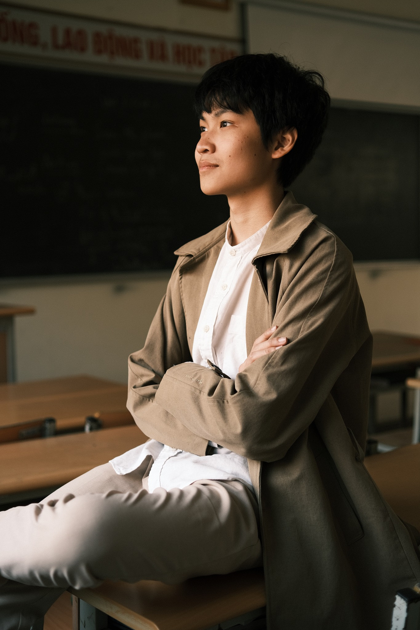 Lã Châu Giang (Lớp 11 Hóa 1) là tác giả của nghiên cứu Đặc tính động học của Enzyme Fumarase ở người và các chủng đột biến của Enzyme Fumarase ở người, đạt hạng A (Top 5%) Lumiere Education của Đại Học Harvard. Châu Giang còn từng giành được huy chương Vàng kỳ thi Khoa học trẻ quốc tế IJSO 2021 với tổng điểm cao nhất đoàn Việt Nam. Bộ ảnh sau khi lọt Top 10 Đại sứ Ams của Châu Giang còn gây sốt với nhan sắc trong veo, tựa công chúa.