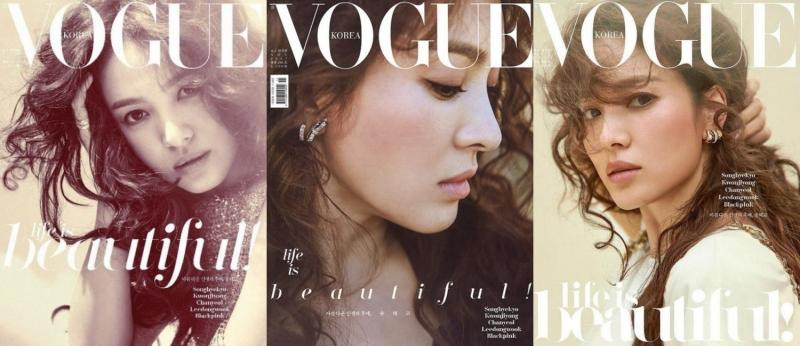Tới tháng 11/2017, Song Hye Kyo trở lại trên bìa VOGUE Hàn với tận 3 phiên bản bìa, một đãi ngộ cực kỳ hiếm hoi của VOGUE.