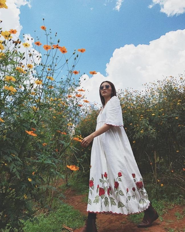 Nữ diễn viên thường xuyên diện đồ của các local brand với mức giá vừa phải nhưng vẫn rất đẹp và sang. Chẳng hạn khi đi du lịch, Hà Tăng thường mặc váy áo đơn sắc thay vì họa tiết rực rỡ.