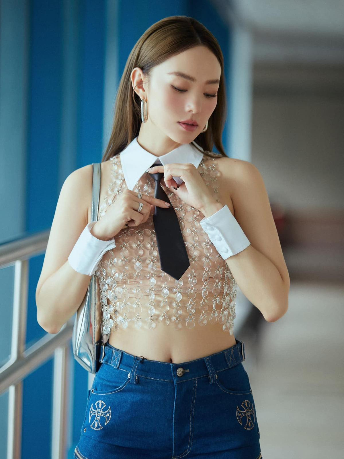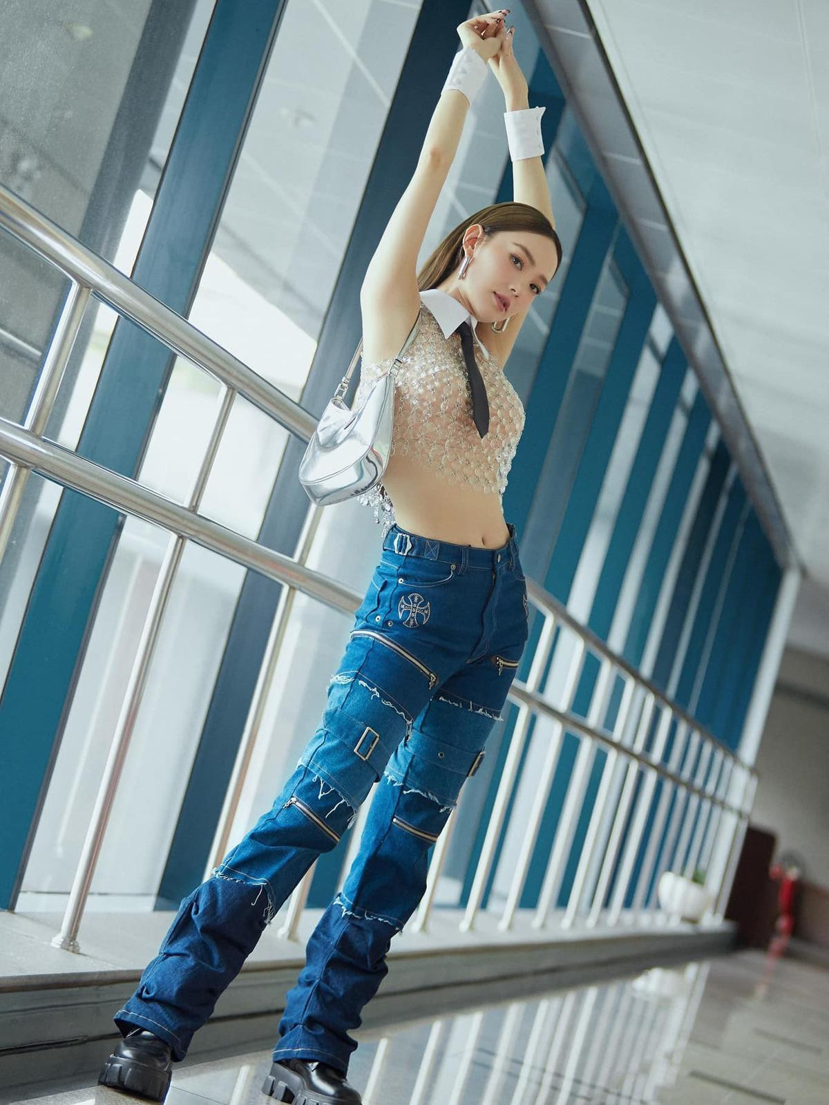 Trước đó, Minh Hằng cũng đã có set đồ tương tự như Thùy Tiên khi kết hợp quần cạp cao với chiếc áo độc đáo này, giúp nữ diễn viên khoe được vóc dáng mảnh mai.