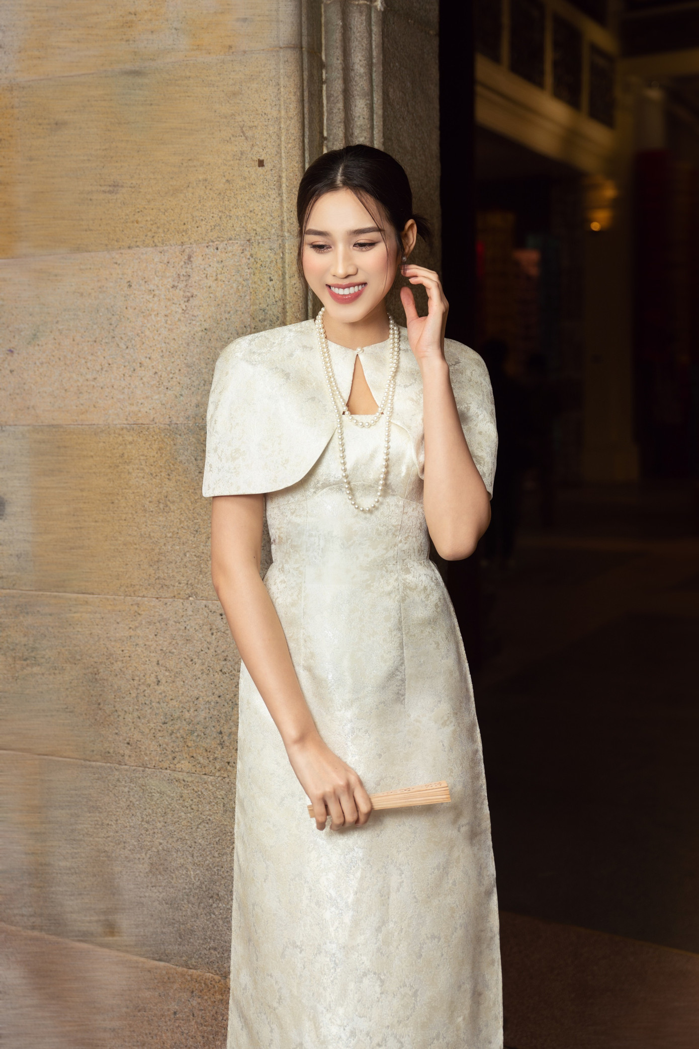Hòa chung trào lưu mặc áo dài suông trơn màu cho Tết năm nay, Hoa hậu Đỗ Thị Hà đã có hẳn bộ sưu tập áo dài lụa với tông màu nhẹ nhàng như trắng, hồng nhạt.