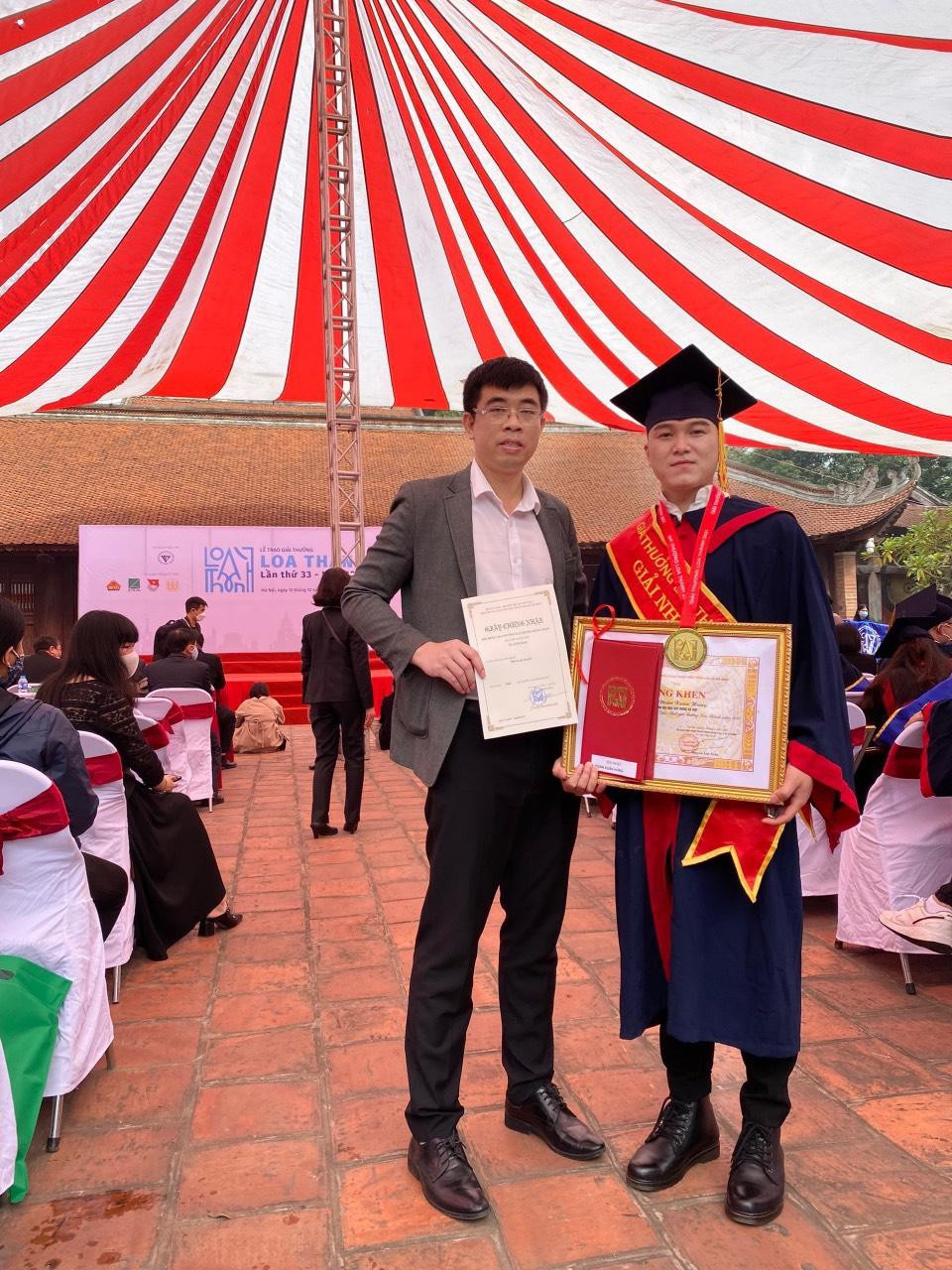 Bởi vậy, mình luôn cố gắng vươn lên trong học tập tại trường Đại học Xây dựng Hà Nội và mình đã được đền đáp bằng: Học bổng loại giỏi, xuất sắc nhiều năm học, học bổng LOTTE, học bổng do cựu Sinh viên trường Đại học Xây Dựng trao tặng, giải thưởng KOVA … Và kết thúc thời sinh viên với giải thưởng vô cùng danh giá – Giải Nhất Giải thưởng Loa Thành lần thứ 33 năm 2021.
