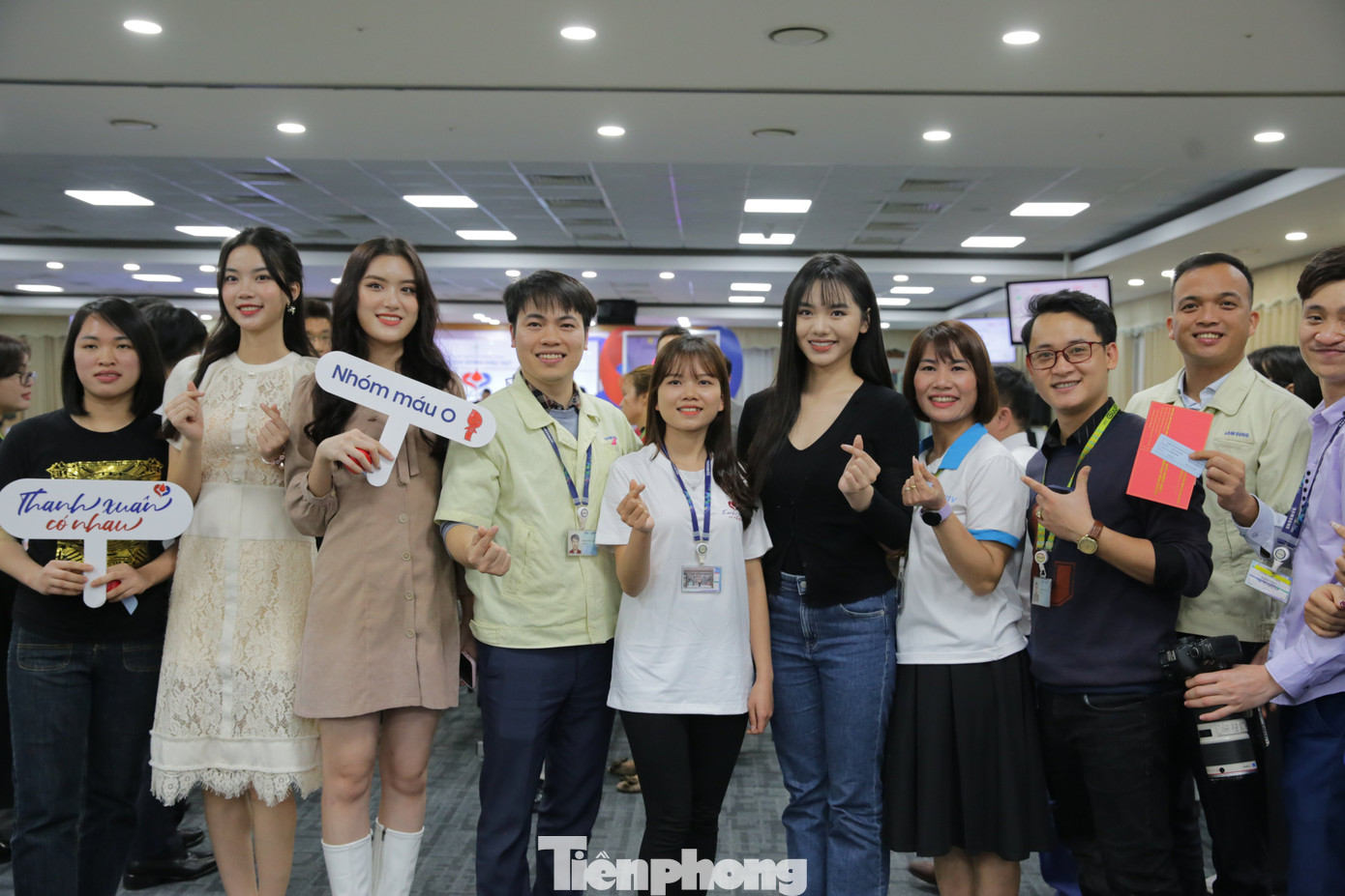 | Những người tham gia hiến máu chụp ảnh lưu niệm cùng các người đẹp của cuộc thi Hoa hậu Việt Nam năm 2022. |