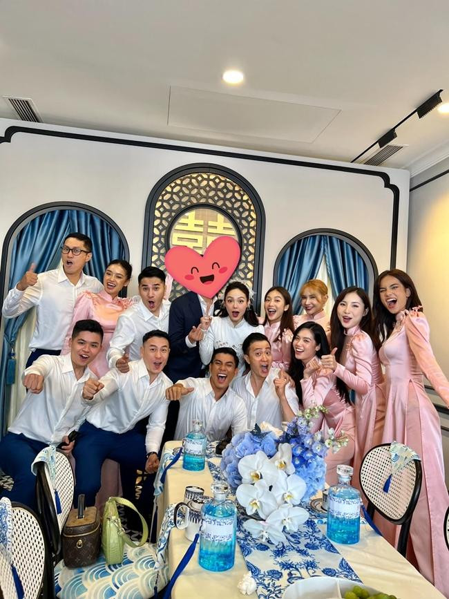 HHTO - Sáng 13/6, Minh Hằng và chồng đã tổ chức lễ ăn hỏi ấm cúng tại nhà riêng. Trên nền không gian được thiết kế tinh tế, hai nhân vật chính của buổi lễ nổi bật bên dàn phù dâu, phù rể toàn người nổi tiếng.
