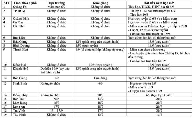 Những địa phương không tổ chức khai giảng năm học 2021 - 2022 trong ngày 5/9 như sau: