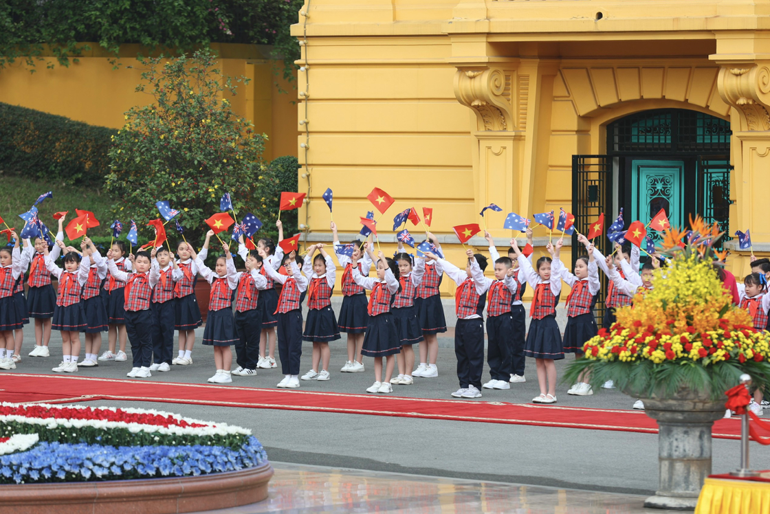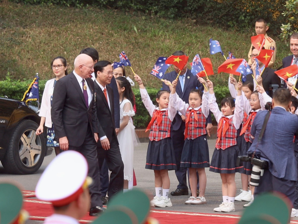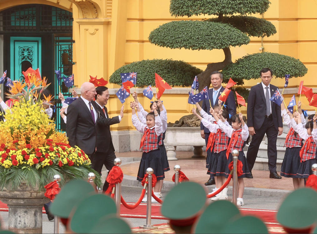 | Chủ tịch nước Võ Văn Thưởng đón Toàn quyền Australia David Hurley. (Ảnh: Như Ý) |