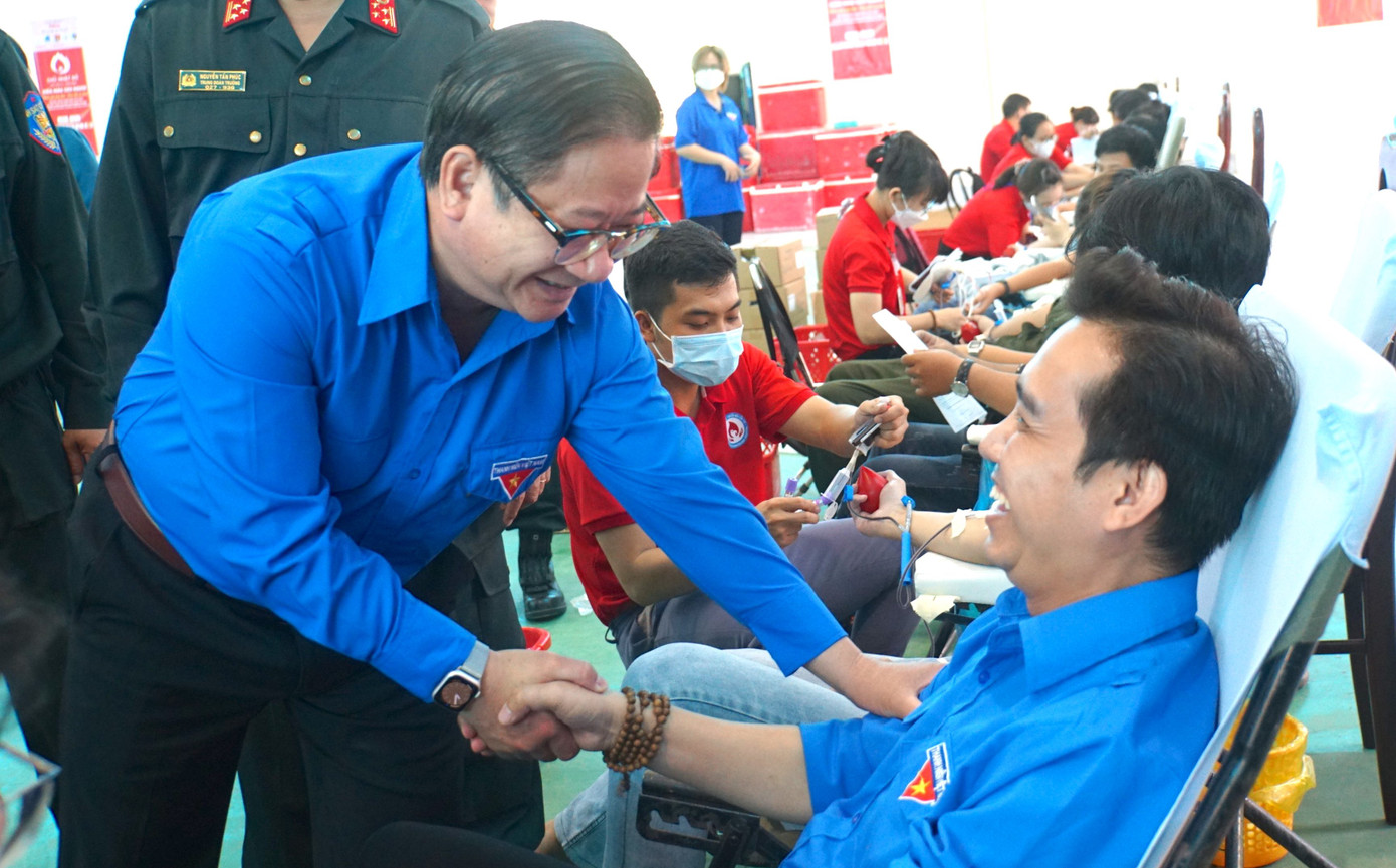 Chủ tịch UBND TP Cần Thơ ân cần thăm hỏi cán bộ chiến sĩ tham gia hiến máu tình nguyện tại Ngày hội Chủ nhật Đỏ.