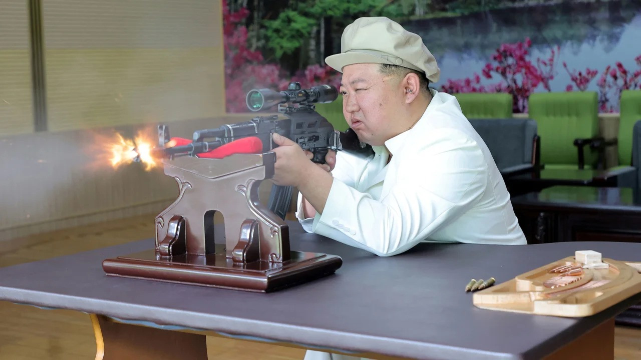| Hình ảnh do hãng thông tấn KCNA đăng tải cho thấy ông Kim bắn thử các loại súng trường tấn công khác nhau. |