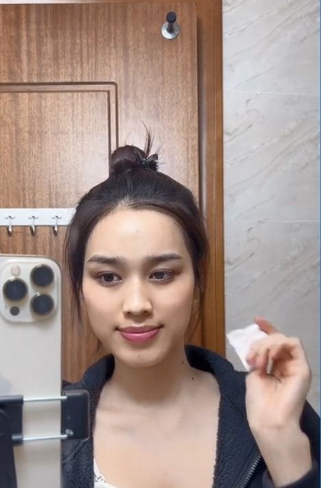 Vậy là Đỗ Thị Hà đã nhanh chóng làm video hé lộ chu trình dưỡng da trong mùa Đông của mình để có được làn da đủ ẩm, mịn màng bất chấp thời tiết quá khô. Đầu tiên là nàng hậu phải tẩy trang thật kỹ sau một ngày làm việc.