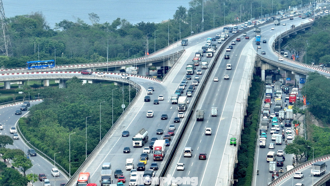 TPO - Chiều 3/5, tại lối ra cao tốc Pháp Vân - Cầu Giẽ (Hoàng Mai, Hà Nội) lượng phương tiện ô tô tăng cao dẫn đến ùn dài hàng cây số theo hướng vào trung tâm thành phố.
