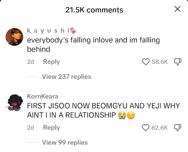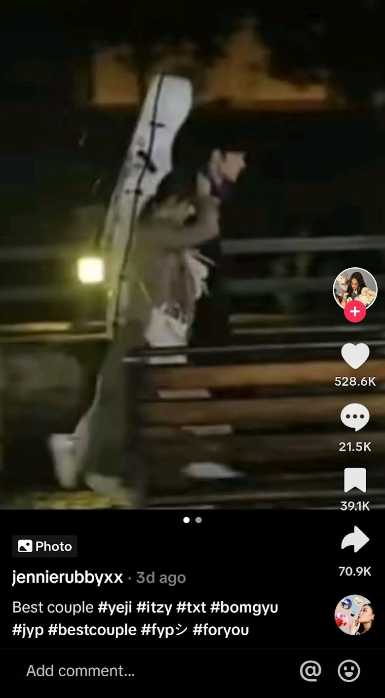 Bài viết trên TikTok này ngay lập tức thu hút 3,5 triệu lượt xem và 528.800 lượt thích. Cư dân mạng đã bị 'sốc', đặc biệt là khi nhiều tin tức hẹn hò khác, chẳng hạn như Jisoo của BLACKPINK đã xuất hiện gần đây. Nhưng rất nhiều người hâm mộ cũng vui vẻ và ủng hộ mối quan hệ của Beomgyu và Yeji.