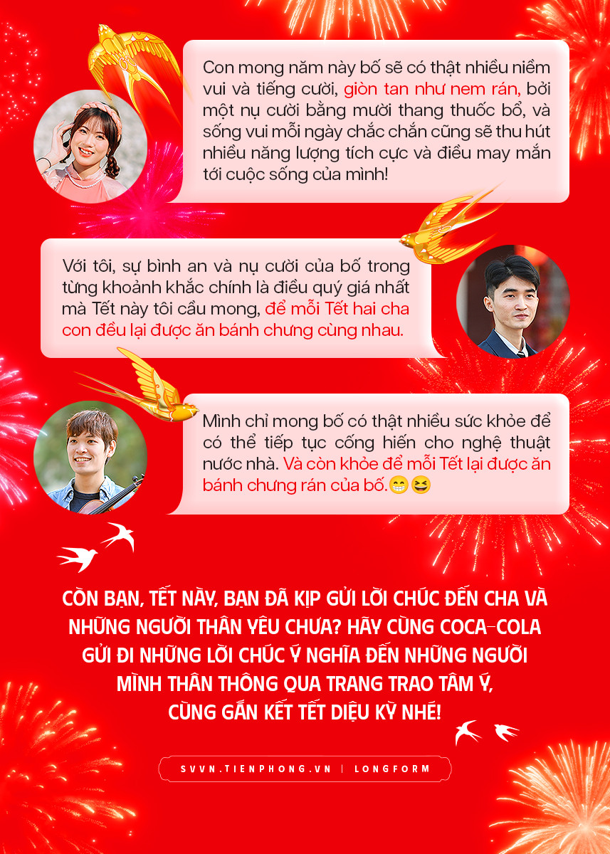 Tôi muốn gửi đến bố lời chúc sức khỏe và bình an. Với tôi, sự bình an và nụ cười của bố trong từng khoảnh khắc chính là điều quý giá nhất mà Tết này tôi cầu mong, để mỗi Tết hai cha con đều lại được ăn bánh chưng cùng nhau.