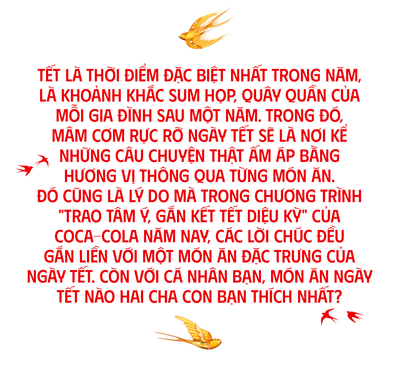 Còn bạn, Tết này, bạn đã kịp gửi lời chúc đến cha và những người thân yêu chưa? Hãy cùng Coca-Cola gửi đi những lời chúc ý nghĩa đến những người mình yêu thương thông qua trang Trao Tâm Ý, cùng gắn kết Tết diệu kỳ nhé!