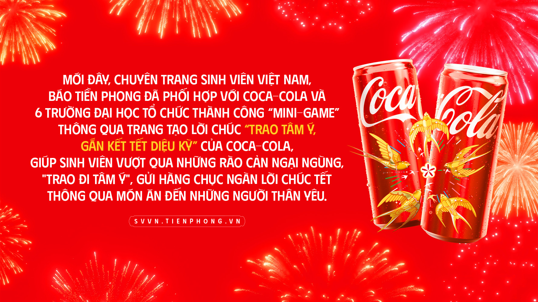 Người cha luôn thầm lặng là chỗ dựa vững chắc cho gia đình và các con, sau mỗi thành công cũng như thất bại. Cuộc sống hiện đại nhanh, vội vã, đôi khi các bạn trẻ lại quên mất những việc đơn giản là gửi lời chúc Tết đến cha. Nằm trong chương trình "Trao Tâm Ý, Gắn Kết Tết Diệu Kỳ", mini-game Trao Tâm Ý, Nhận Lộc Hết Ý của Coca-Cola và Chuyên trang Sinh Viên Việt Nam, Báo Tiền Phong tổ chức dịp Tết Ất Tỵ 2025 đã giúp nhiều người trẻ tĩnh lại, gắn kết và dễ dàng trao gửi yêu thương đến với người thân hơn.