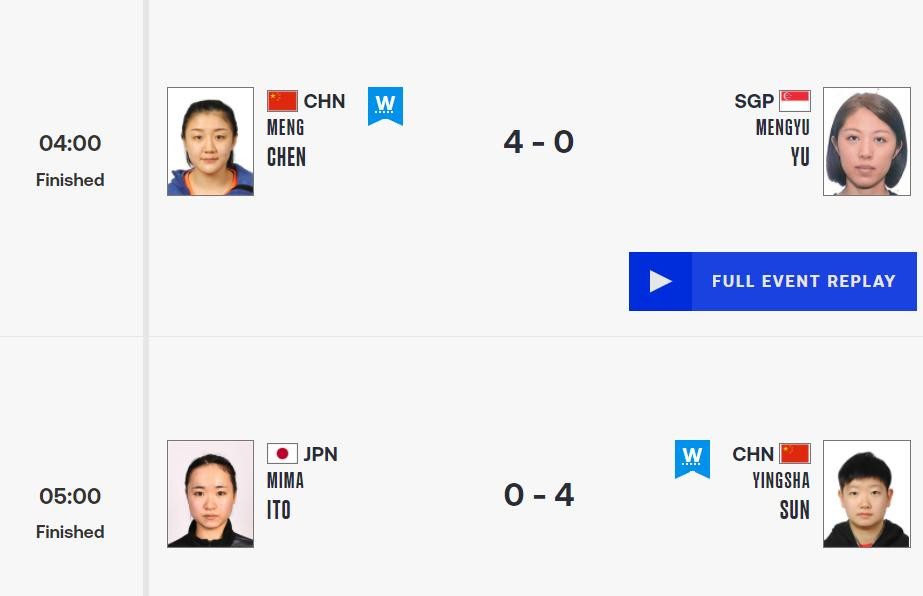 Trong khi Chen Meng giành thắng lợi 4-0 trước cây vợt Singapore Yu Mengyu thì người đàn em Sun Ying Sha cũng gieo nỗi buồn vô hạn cho bóng bàn chủ nhà Nhật Bản với chiến thắng 4-0 trước Ito Mima.