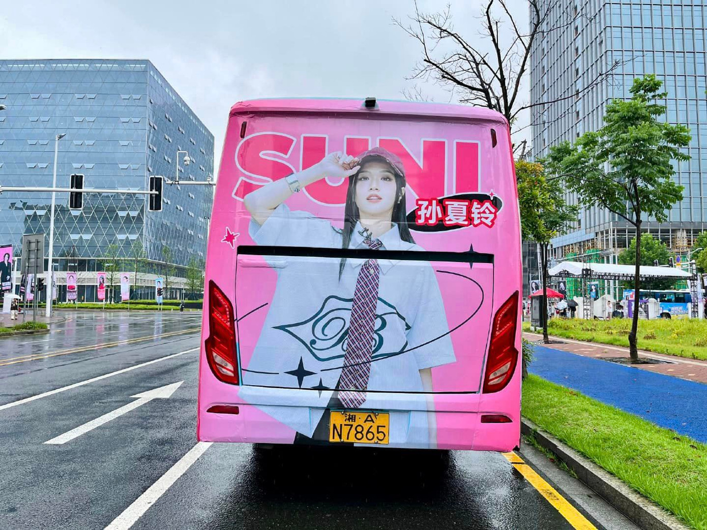 Xe buýt 2 tầng dán kín hình quảng cáo cho Suni Hạ Linh bằng cả tiếng Việt và Trung được thuê chạy vòng quanh nơi ghi hình. Bên ngoài địa điểm quay, standee, cờ, photobooth cùng những phần quà được người hâm mộ chuẩn bị.