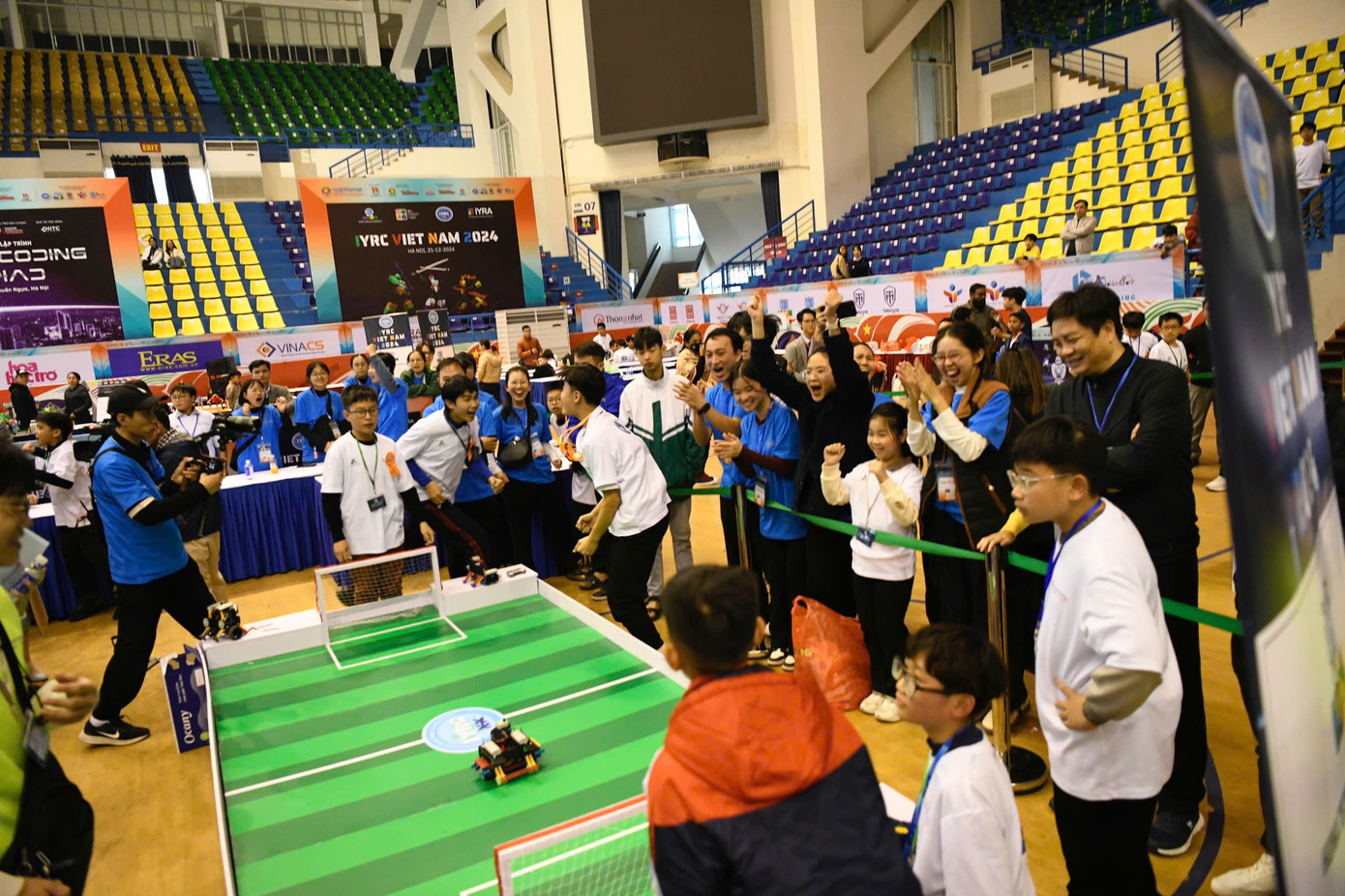 Bảng thi khiến các khán giả hồi hộp rồi vỡ òa hơn cả khi theo dõi có lẽ là bảng thi “Thế vận hội robot”. Đặc biệt, phần thi bóng đá và bóng chuyền là 2 trong số các phần thi tại VSAR 2024 khiến các cổ động viên hào hứng hơn cả, khi các bậc phụ huynh hồi hộp theo dõi các bạn nhỏ cố gắng điều khiển robot để ghi được nhiều bàn thắng nhất trong thời gian giới hạn.