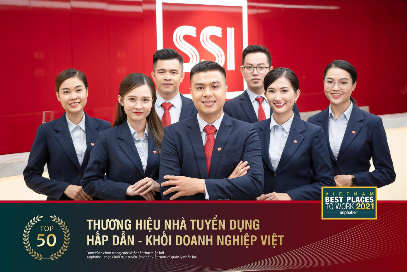 Trong khuôn khổ cuộc khảo sát thường niên về nơi làm việc tốt nhất Việt Nam 2021, công ty Anphabe –được sự bảo trợ của Phòng Thương mại và Công nghiệp Việt Nam (VCCI), đã tiến hành khảo sát với hơn 65,000+ đáp viên là những người đi làm có kinh nghiệm trên toàn quốc, đánh giá cho hơn 500+ thương hiệu trong gần 20 ngành nghề. Nhận được những đánh giá cao từ nhiều nhân sự có kinh nghiệm trong ngành, vượt qua tiêu chuẩn khắt khe dựa trên chỉ số EBAI (chỉ số sức hấp dẫn Thương hiệu nhà tuyển dụng) kết hợp với kết quả đo lường đối với nhân viên nội bộ, Chứng khoán SSI vinh dự góp mặt trong 03 danh sách quan trọng bao gồm: “Top 100 nơi làm việc tốt nhất Việt Nam”, “Top 50 thương hiệu tuyển dụng hấp dẫn- Khối Doanh nghiệp Việt” và đặc biệt đứng thứ 2 trong danh sách “Nơi làm việc tốt nhất ngành Tài chính”.