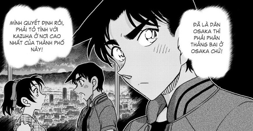 Bỏ qua chi tiết gây tranh cãi trên, Conan chương 1129 lại khiến độc giả khá phấn khích khi trong đó, Heiji một lần nữa dự tính tỏ tình Kazuha. Nghe thấy màn tỏ tình thành công của Kenzaki tại tòa tháp Naniwa Haruksa, Conan và Ran đã lập tức gợi ý rằng đây là một địa điểm quá tuyệt hảo. Điều này thu hút sự chú ý của Heiji, và anh chàng đã quyết định chọn đây là nơi tỏ tình mới.