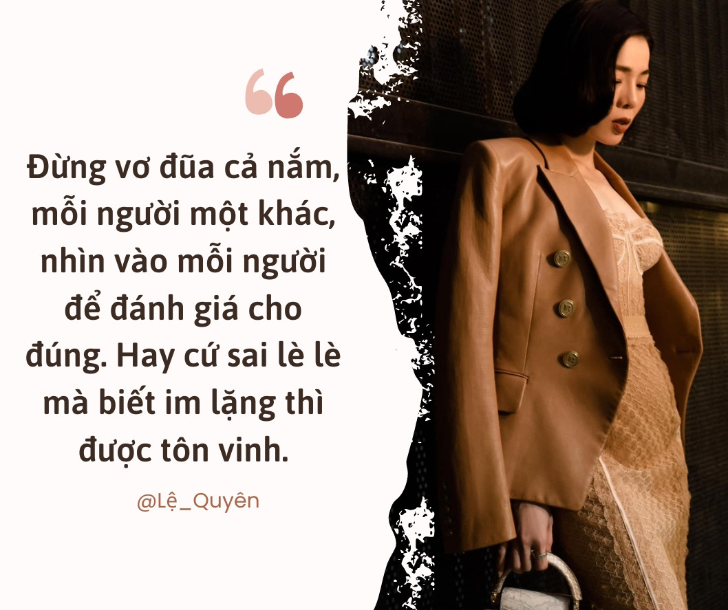 "Lệ Quyên không cần phải "diễn", phải thay đổi hình ảnh nữ hoàng thân thiện hay gì gì đó. Lệ Quyên hãy cứ là Lệ Quyên cá tính, mạnh mẽ. Nhưng cô cũng cần là một Lệ Quyên của khéo léo trong cách lựa chọn ngôn từ và cách hành văn.