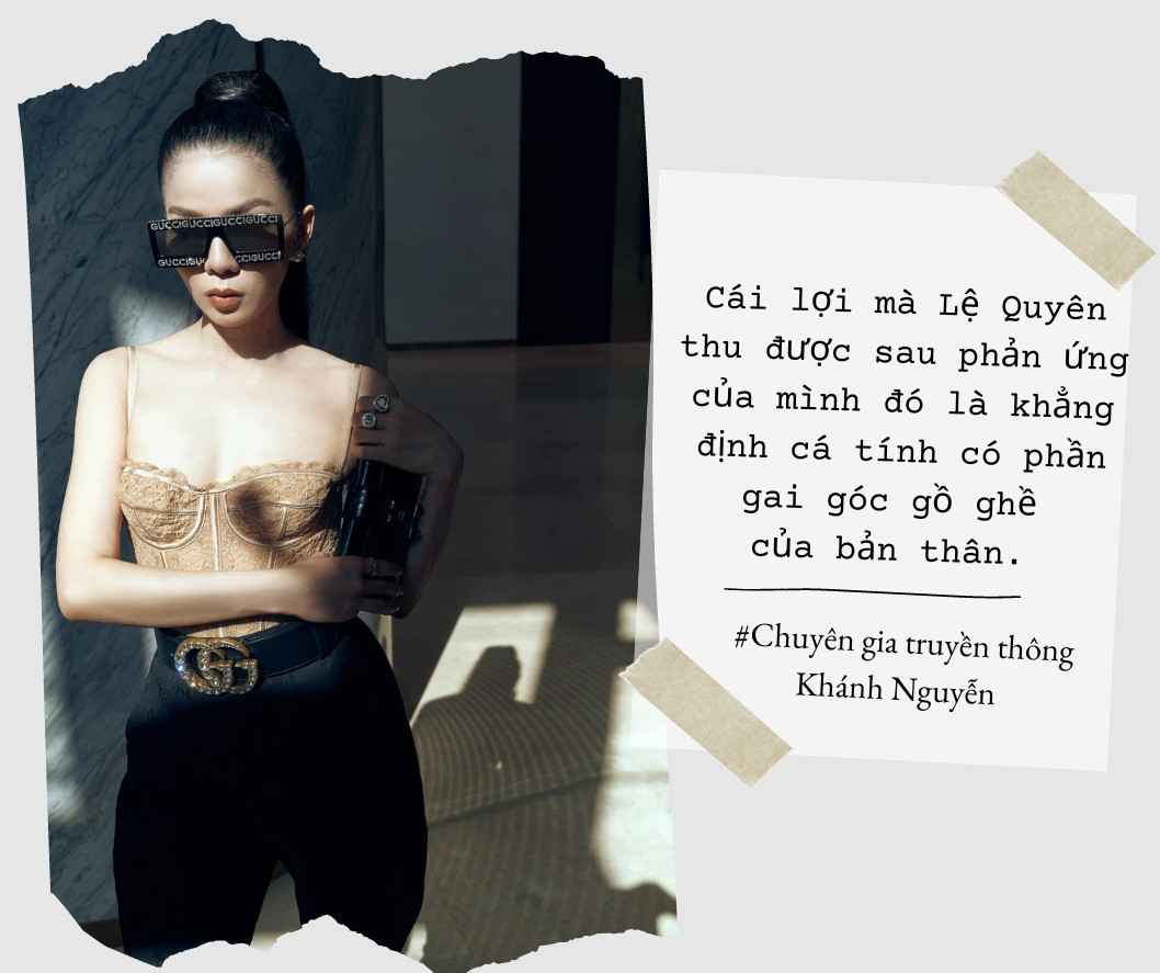 Sau những hành động trên mạng của Lệ Quyên, anh Khánh Nguyễn - PR Manager - MVV Group, từng làm Chuyên viên truyền thông của Thông tấn xã Việt Nam chia sẻ: "Tôi thấy phản ứng của Lệ Quyên có cả lợi lẫn hại, nhưng hiện tại, lợi bất cập hại".