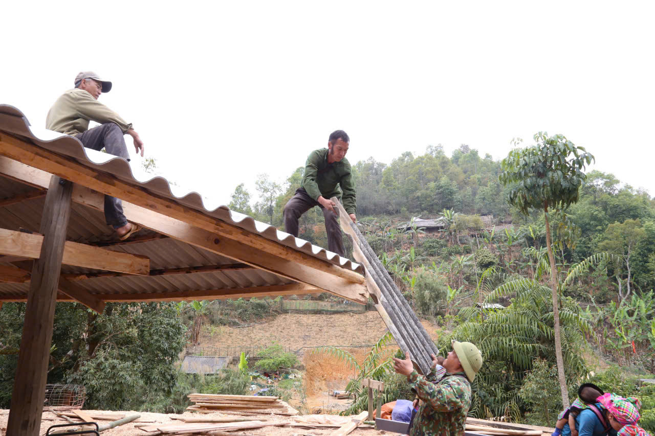 Người dân bản Háng Á cùng chung tay giúp đỡ các gia đình xóa nhà tạm, nhà dột nát