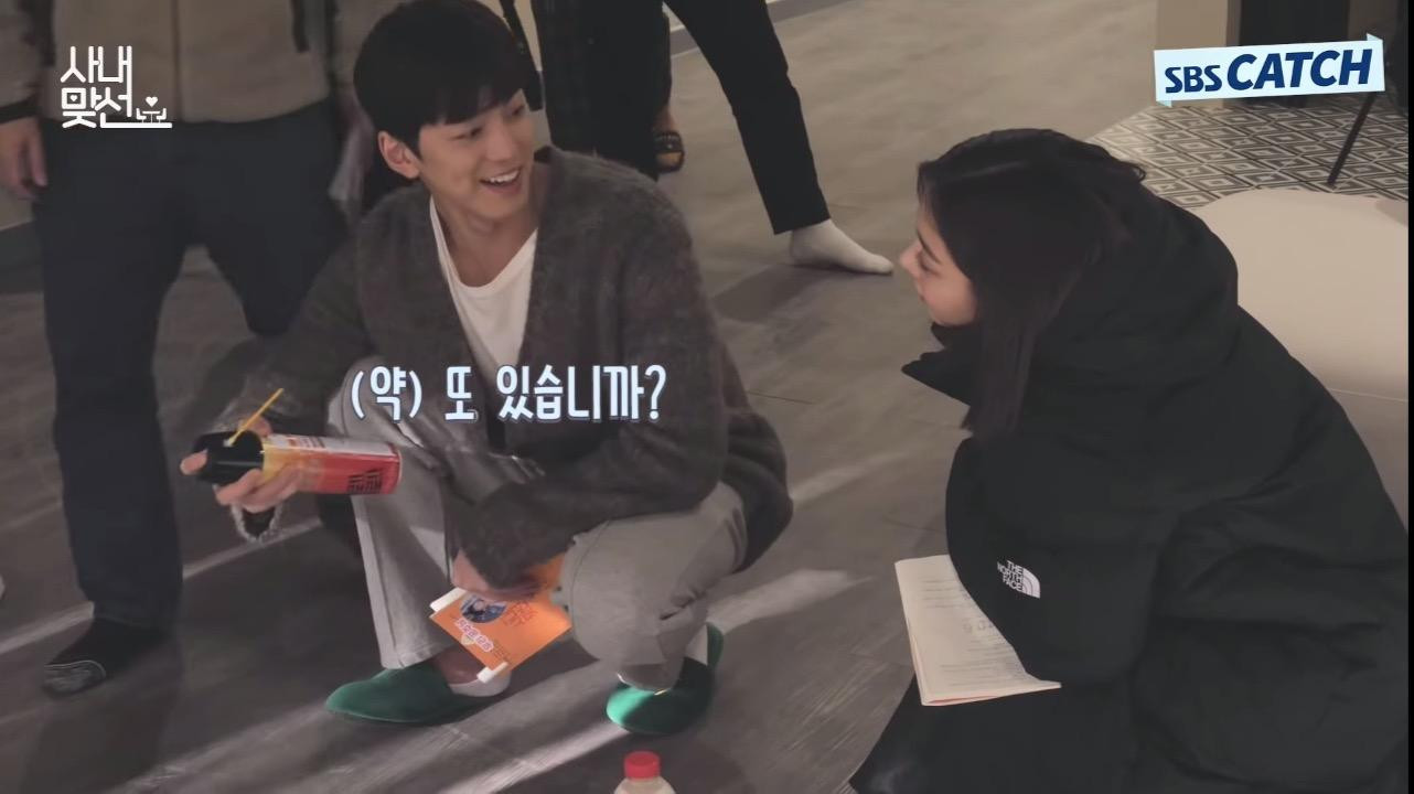 Kim Min Kyu và Seol In Ah thoải mái khoác vai, diễn tập trước khi bắt đầu cảnh quay.