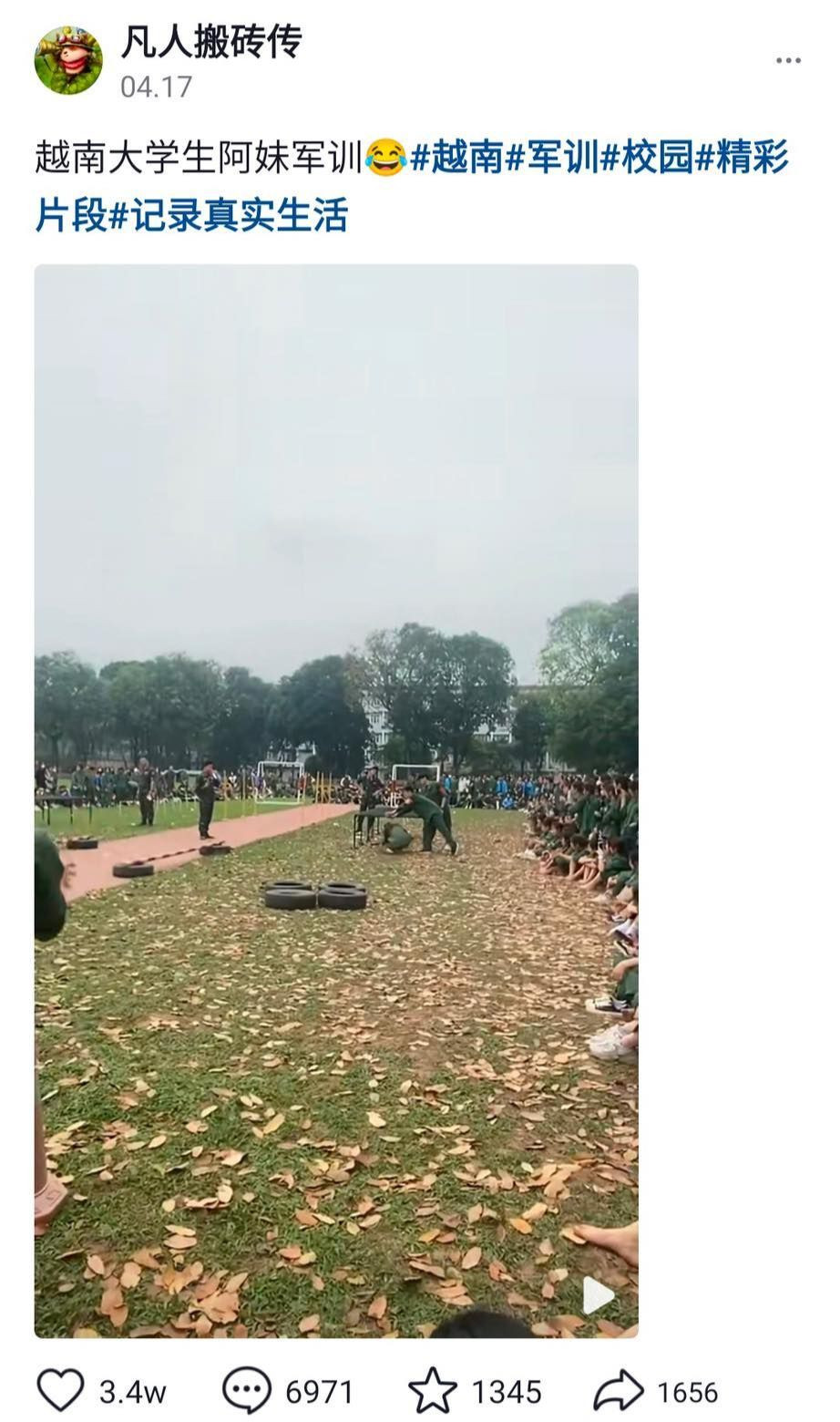 Clip về khóa huấn luyện dành cho sinh viên trong quá trình học quân sự tại Việt Nam cũng được người dùng Douyin chia sẻ lại. Cư dân mạng xứ Trung để lại nhiều bình luận xuýt xoa vì độ khó và dành sự ngưỡng mộ cho tinh thần rèn luyện của sinh viên Việt Nam.
