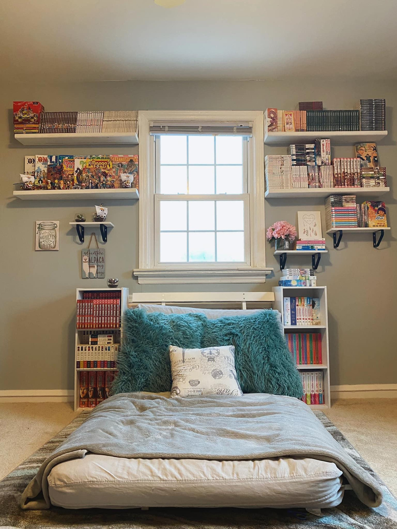 My thừa nhận, ước mơ có một chiếc phòng đầy ắp truyện tranh của cô chưa bao giờ vụt tắt. Từ nhỏ, cô bạn đã nhen nhóm ý định và bắt đầu sưu tầm truyện tranh khắp nơi. Khi trưởng thành lại được chồng ủng hộ và trực tiếp hỗ trợ thực hiện trang trí, thiết kế căn phòng nhỏ.