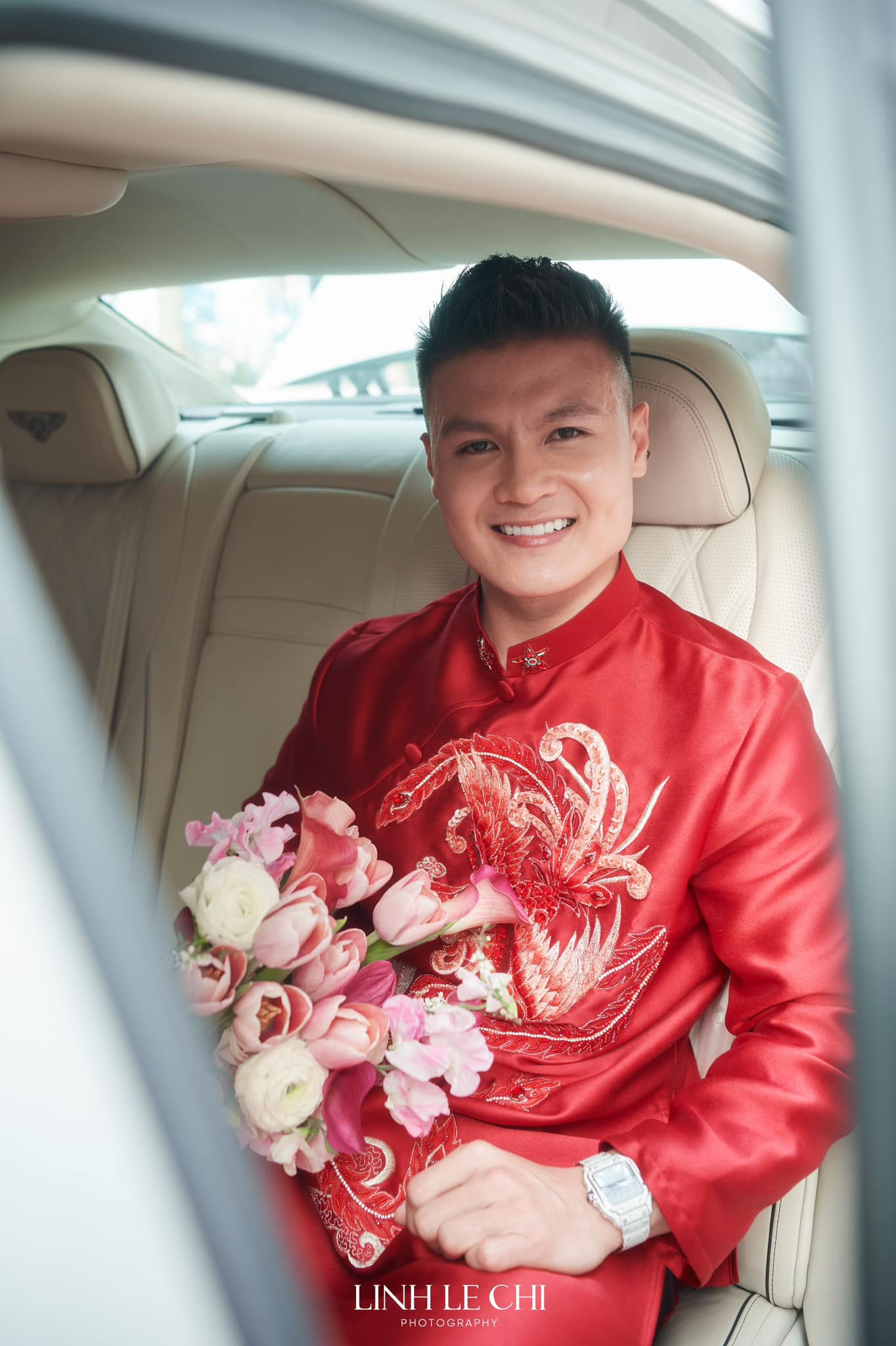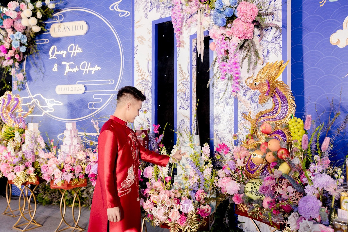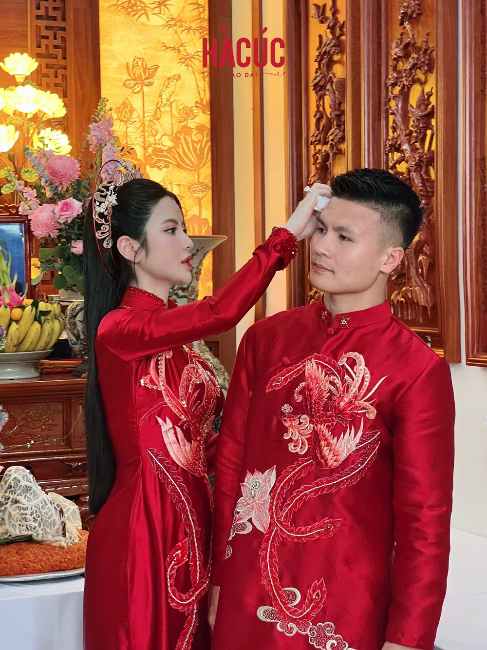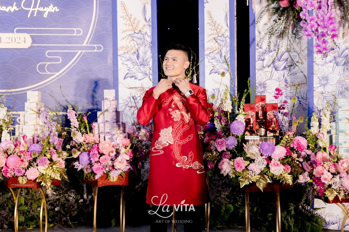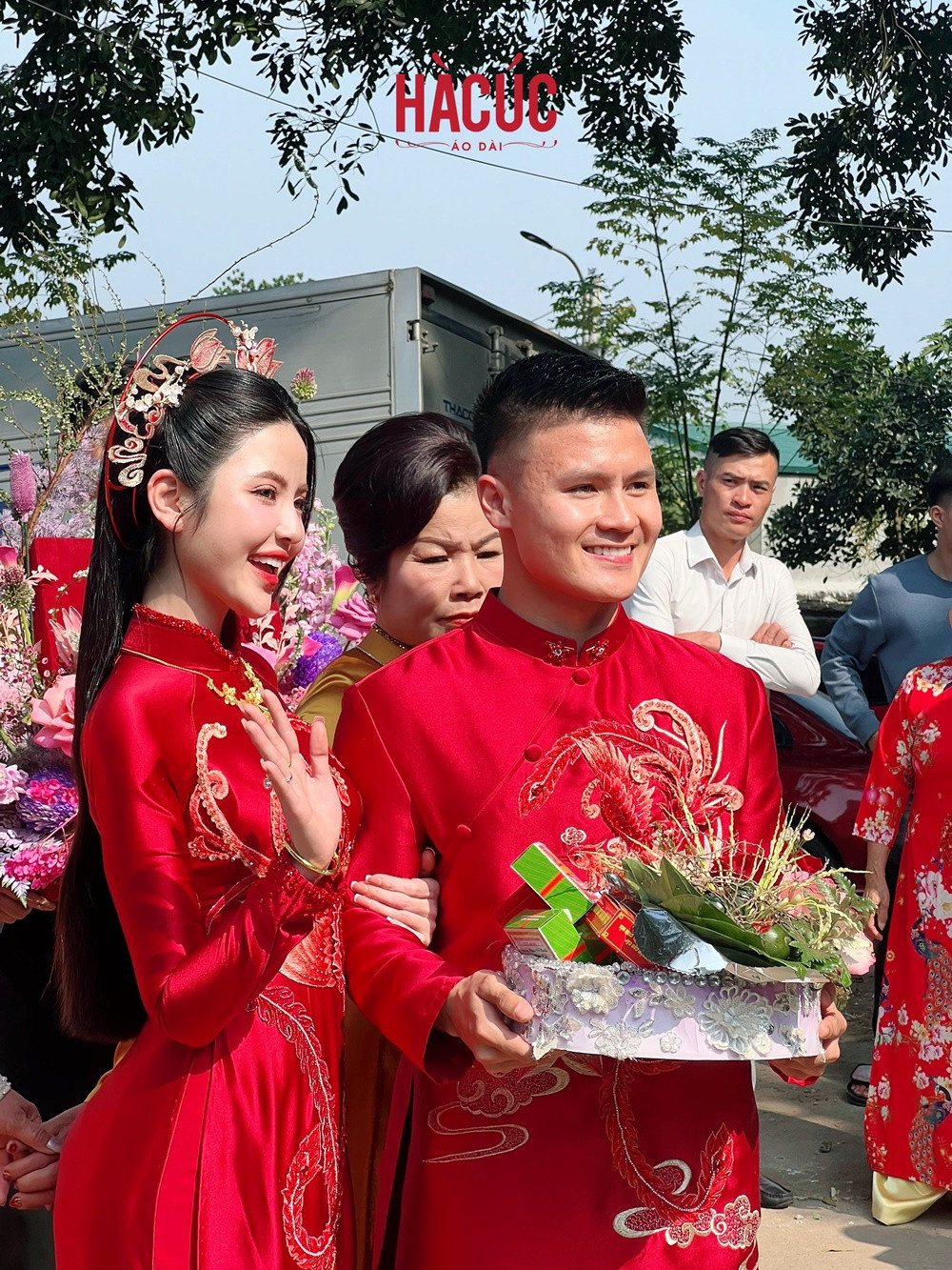 Vào trưa ngày 1/1/2024, chú rể Quang Hải đã mang sính lễ tới hỏi cưới Chu Thanh Huyền. Cặp đôi đẹp rực rỡ trong bộ áo dài đỏ thẫm, đặc biệt là Quang Hải nhìn cực bảnh bên chiếc siêu xe đi hỏi vợ.