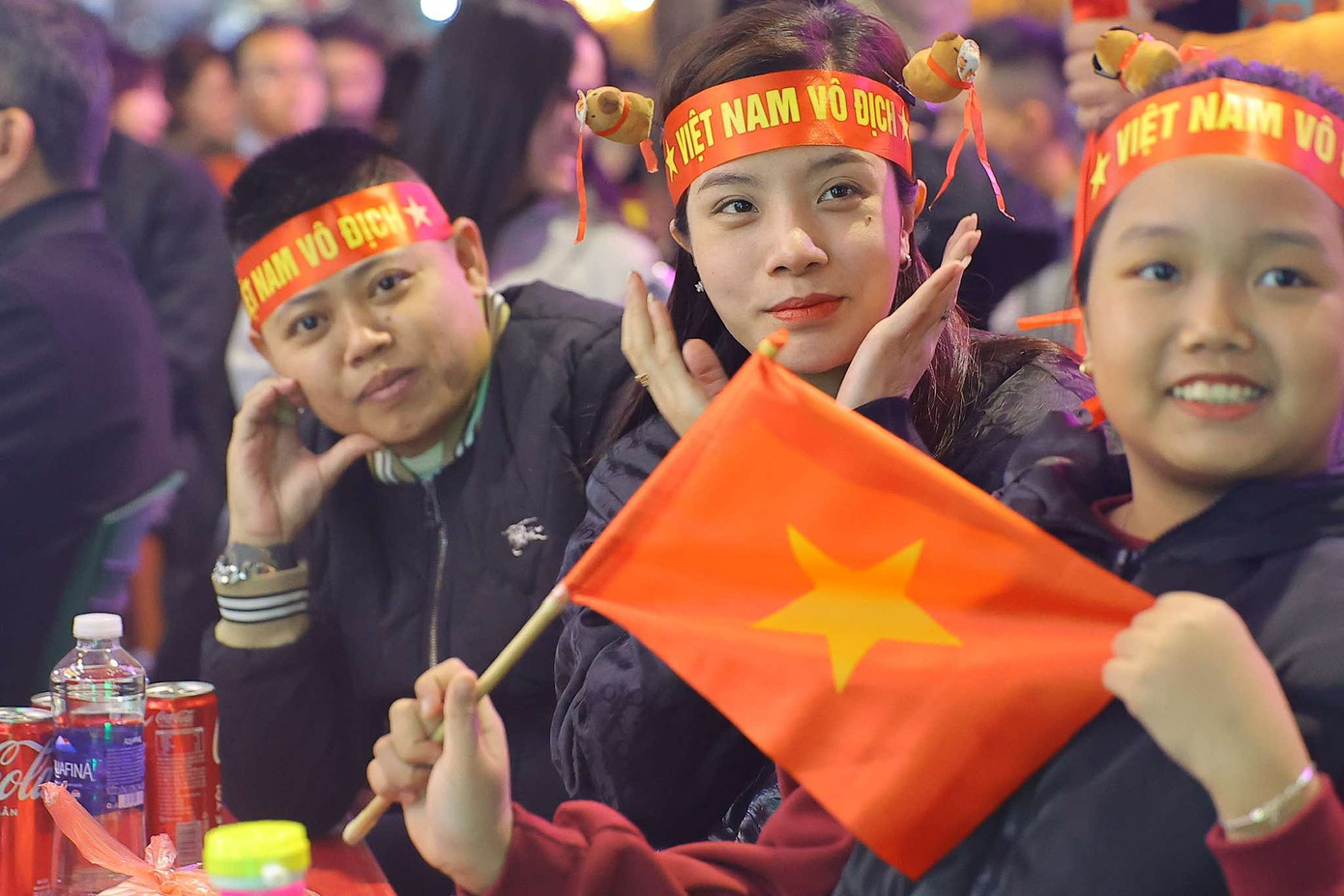Rất đông người hâm mộ ở TPHCM đã tới phố đi bộ Nguyễn Huệ để theo dõi trận chung kết và cổ vũ cho đội tuyển Việt Nam