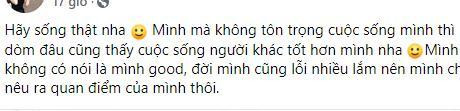 Mới đây, trên trang Facebook cá nhân, Đoan Minh chia sẻ: "Hãy sống thật nha. Mình mà không tôn trọng cuộc sống mình thì nhìn đâu cũng thấy cuộc sống người khác tốt hơn mình nha. Mình không có nói là mình good (tốt), đời mình cũng lỗi nhiều lắm nên mình chỉ nêu ra quan điểm của mình thôi".