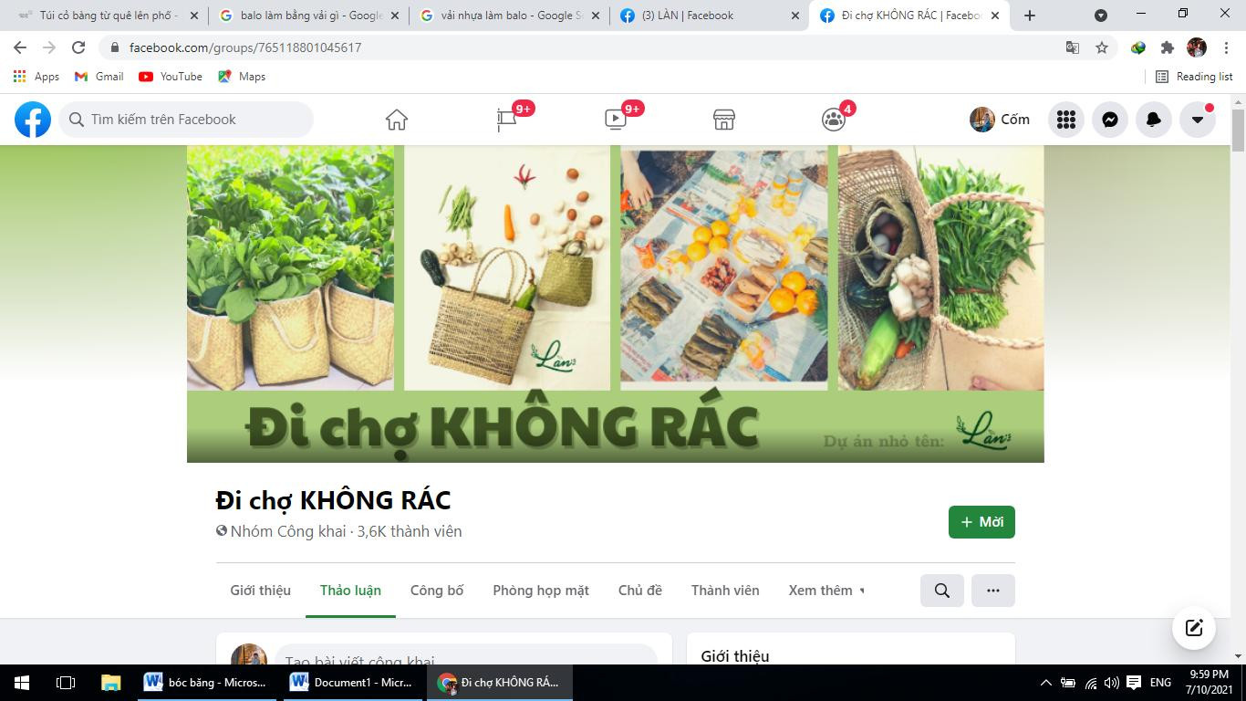 Ngoài tạo lập fanpage "LÀN" để bán những chiếc làn cỏ với đủ kích cỡ, Dung còn tạo nhóm facebook mang tên “Đi chợ KHÔNG RÁC".
