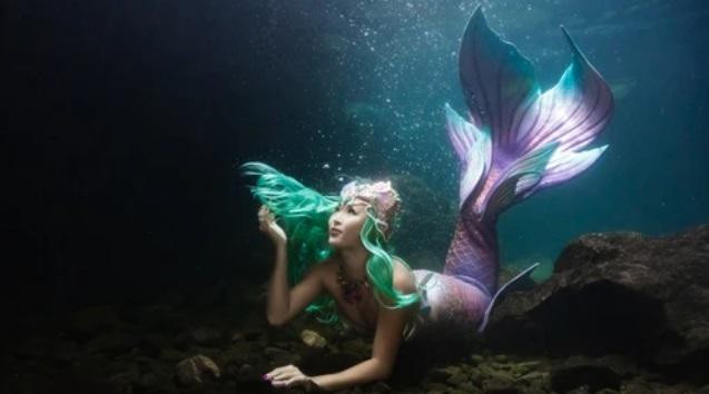 Một nhân vật thần thoại với chiếc đuôi tỏa sáng màu xanh ngọc lam và tím dưới thủy cung, có thể di chuyển dễ dàng trên mặt nước, lướt từ đầu đến cuối, mỉm cười và vẫy tay chào những đứa trẻ đang đứng bên ô kính. Đó là nhân vật Syrena - nàng tiên cá.