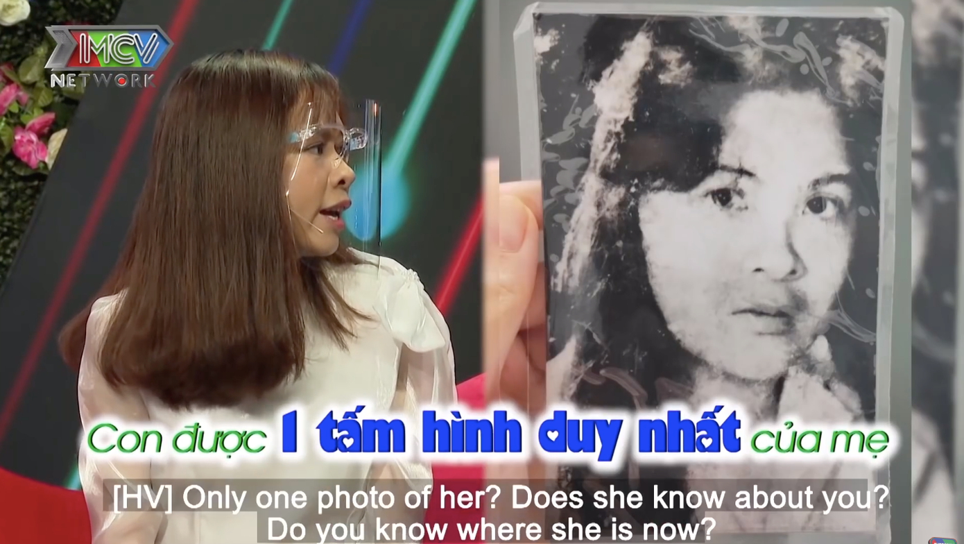 Thuý Hằng cung cấp thêm thông tin là mẹ mình tên Huỳnh Ngọc Trâm, ông ngoại tên Huỳnh Văn On và bà ngoại tên Trần Thị Út. "Con mong mẹ vẫn còn sống, vẫn khoẻ. Nếu thực sự được gặp mẹ thì con sẽ chăm mẹ" - Thuý Hằng chia sẻ.