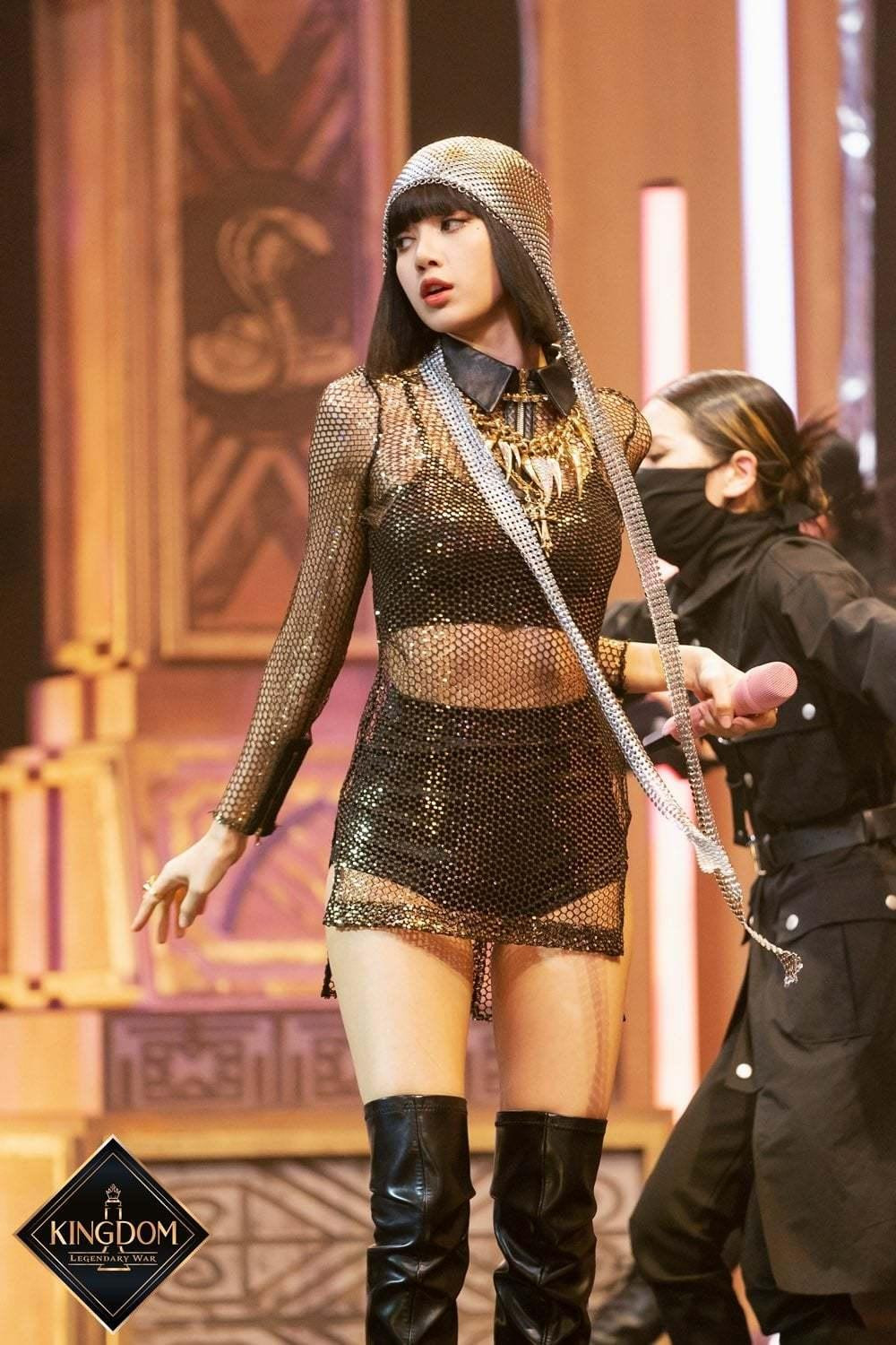 Trang phục của Lisa cũng được khen ngợi hết lời. Lớp áo và mũ lưới màu vàng kèm bốt cao cổ giúp Lisa vừa khoe được thân hình chuẩn không cần chỉnh, vừa tỏa sáng trên sân khấu mà lại không bị phô phang.