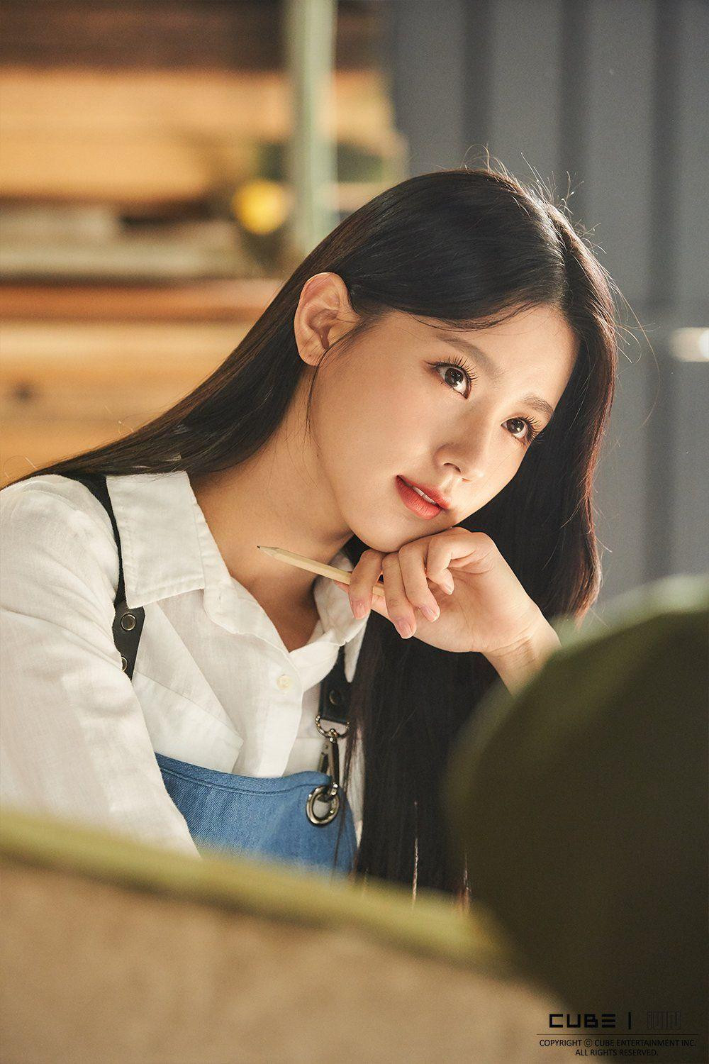 Trong tập 3 của show thi tài Kingdom dành cho các nhóm nhạc nam, Miyeon là khách mời trong tiết mục của nhóm BTOB. Thành viên của (G)-IDLE có tạo hình tiểu thư dịu dàng với váy trắng bồng bềnh, để tóc uốn xoăn nhẹ.