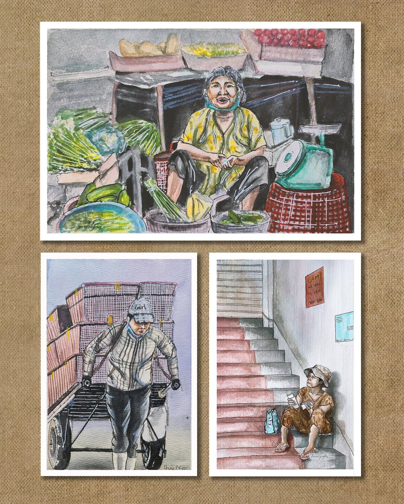 Đằng sau tiếng cười giòn tan, còn là giọt mồ hôi, những nhọc nhằn dưới cái nắng nóng oi bức buổi trưa. Rồi những lo toan cho hôm bán ế, chiều dề không đủ mua miếng thịt cho sắp nhỏ ở nhà, lo không đủ tiền đóng học phí cho đứa lớn. Những hôm Sài Gòn đổ mưa, khách đi đâu mút mùa lệ thuỷ, ngồi chùm hum buồn xo một góc vì bán cả ngày mà chỉ quề trớt, chẳng được nhiu.