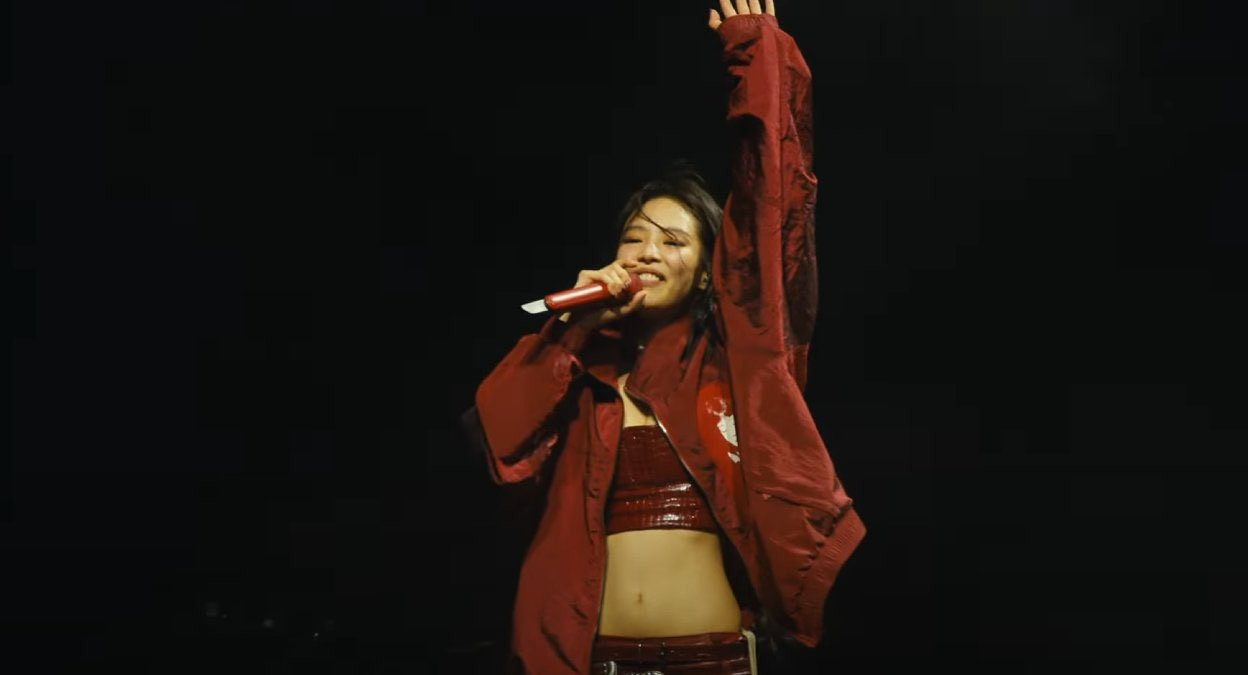 Dựa trên gam đỏ đô, item chủ chốt là crop-top, quần short chất liệu da sần, IT Girl xứ Hàn tạo ra những bộ cánh mới cho các ca khúc tiếp theo qua các thiết kế khoác ngoài.
