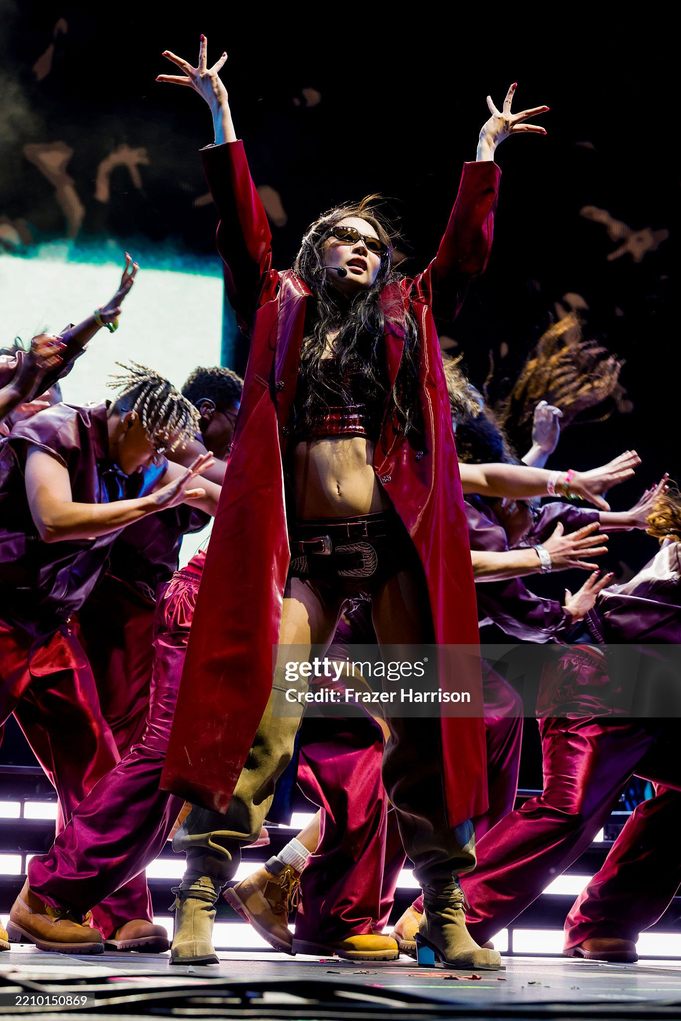 Jennie BLACKPINK trong lần đầu xuất hiện tại Coachella với vai trò nghệ sỹ solo không "dồn sức" tạo ra sự choáng ngợp về mặt thời trang. Nữ idol lựa chọn sắc đỏ là tông màu chủ đề, gắn liền với cô trong giai đoạn hoạt động độc lập gần đây. Tông màu này bao trùm sân khấu từ ca sĩ trình diễn chính cho tới vũ đoàn, tạo ra tổng thể thống nhất, truyền đạt thông điệp trọn vẹn.