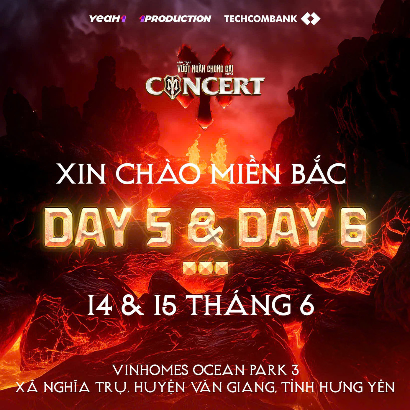 Sự kiện concert D-5 và 6 của Anh Trai Vượt Ngàn Chông Gai sẽ được tổ chức trong hai ngày 14 và ngày 15/6 tại Vinhomes Ocean Park 3 (Xã Nghĩa Trụ - Huyện Văn Giang - Tỉnh Hưng Yên). Đây cũng là địa điểm tổ chức đêm diễn thứ 2 của chuỗi concert vào tháng 12 năm ngoái.