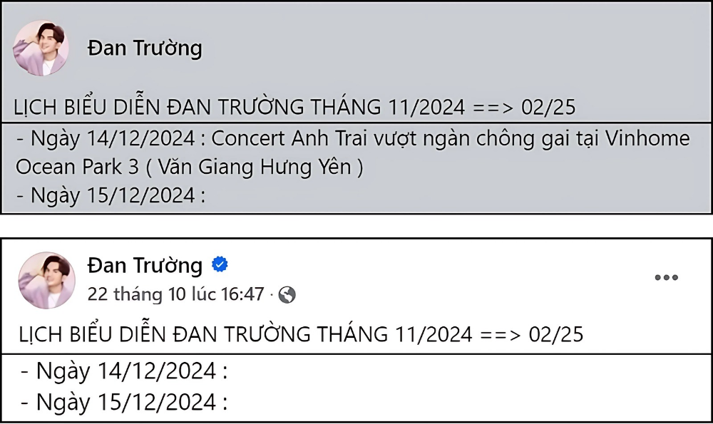 Câu chuyện bắt đầu khi “anh Bo” Đan Trường, không biết vô tình hay cố ý, để lộ lịch trình làm khách mời trong đêm concert Chông Gai D-2 qua một dòng trạng thái lịch trình. Ngay sau đó, “anh tài” Hồng Sơn tiếp tục đẩy cao sự háo hức bằng một dòng trạng thái chỉ vỏn vẹn: “Có khi nào! 13 - 14”, làm các fan lập tức “hóng” lịch diễn cụ thể.