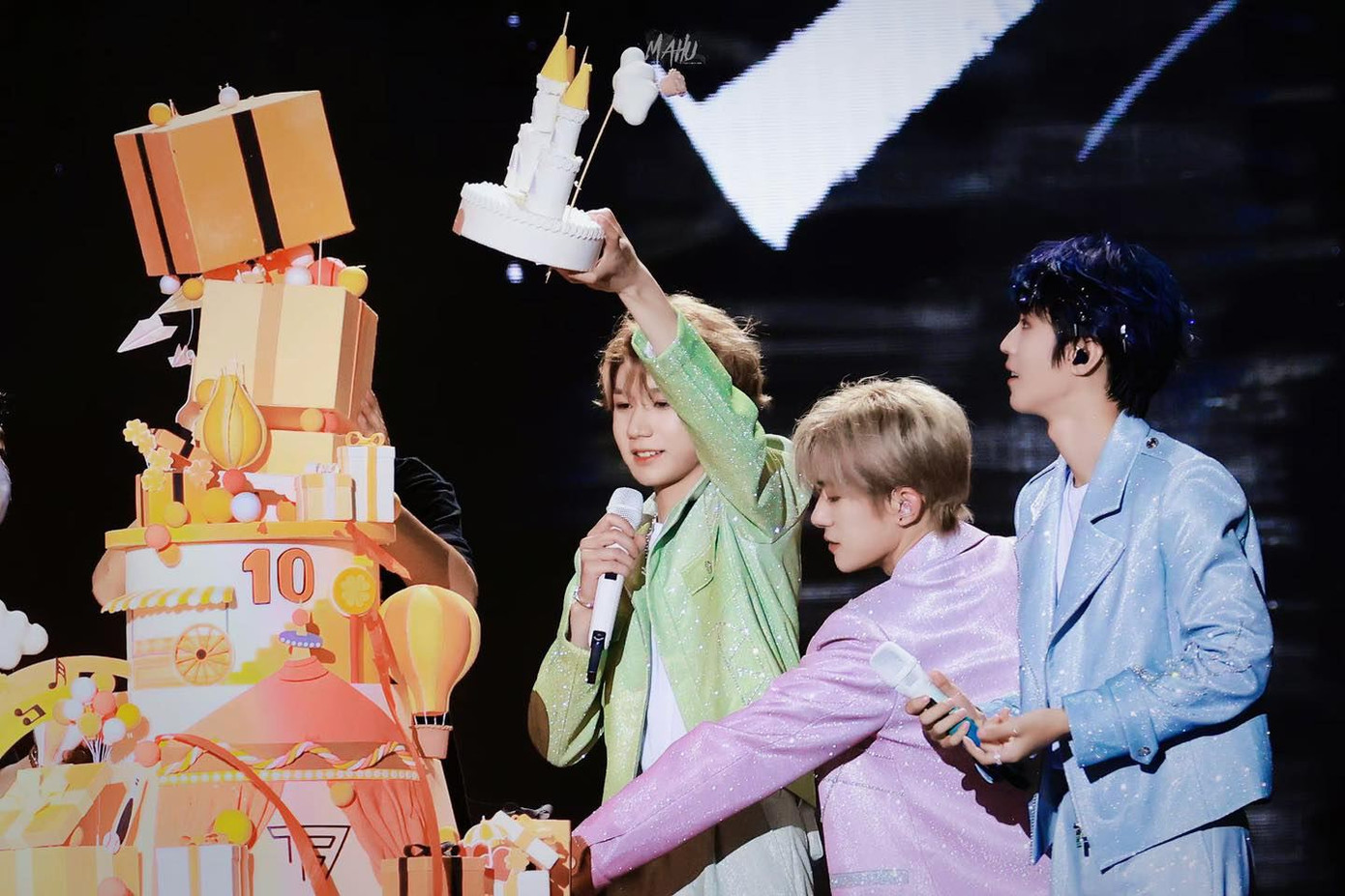 Sự "bất ổn" vẫn chưa dừng lại khi ứng nghiệm lên cả chiếc bánh kem kỷ niệm của nhóm. Bánh vừa được mang ra, nhưng với cấu trúc ziczac độc đáo đã bất ngờ "bị sập". Ba chàng trai vội lao vào đỡ chiếc bánh, vô tình tạo nên khoảnh khắc hài hước, đáng yêu cũng khó quên nhất concert.